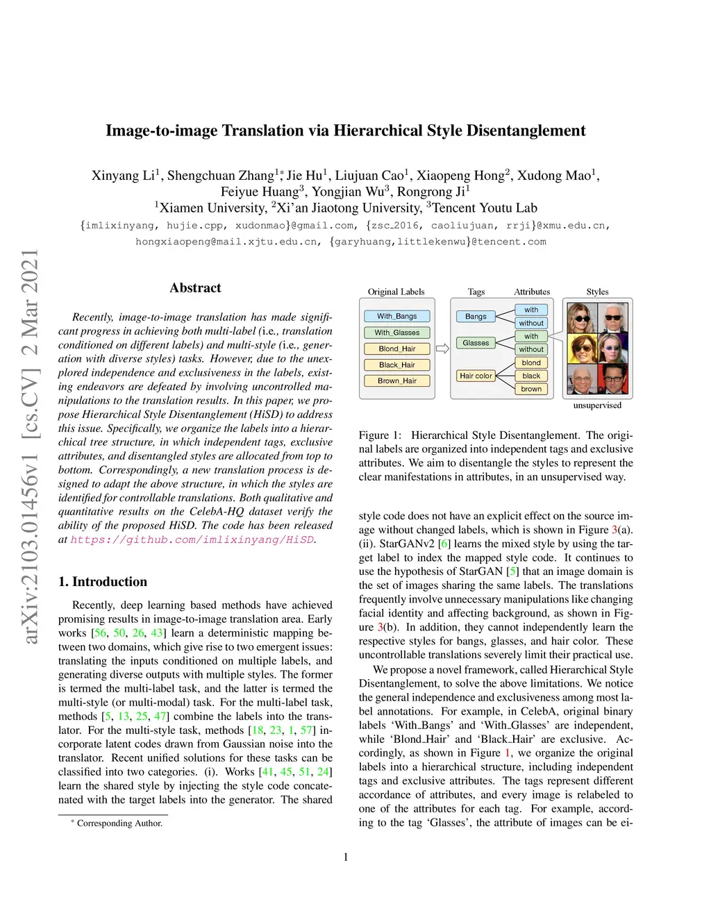 Image-to-image Translation via Hierarchical Style Disentanglement