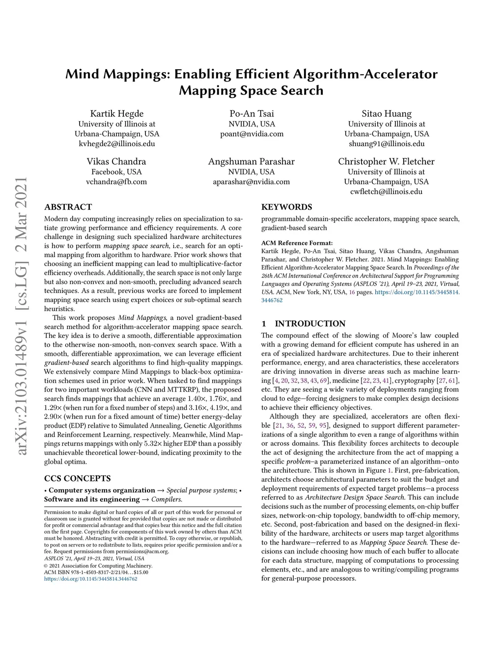 Mind Mappings: Enabling Efficient Algorithm-Accelerator Mapping Space