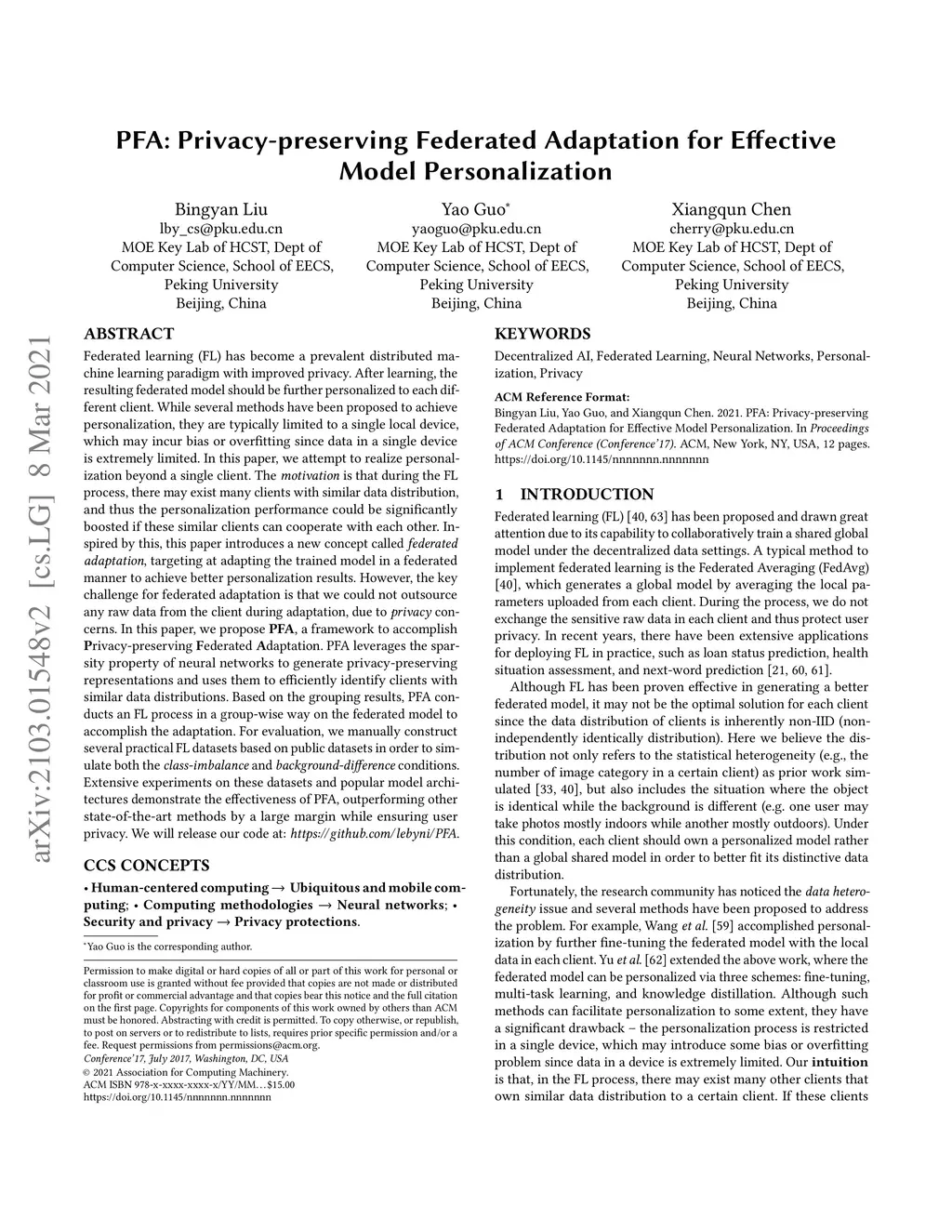 PFA: Privacy-preserving Federated Adaptation for Effective Model