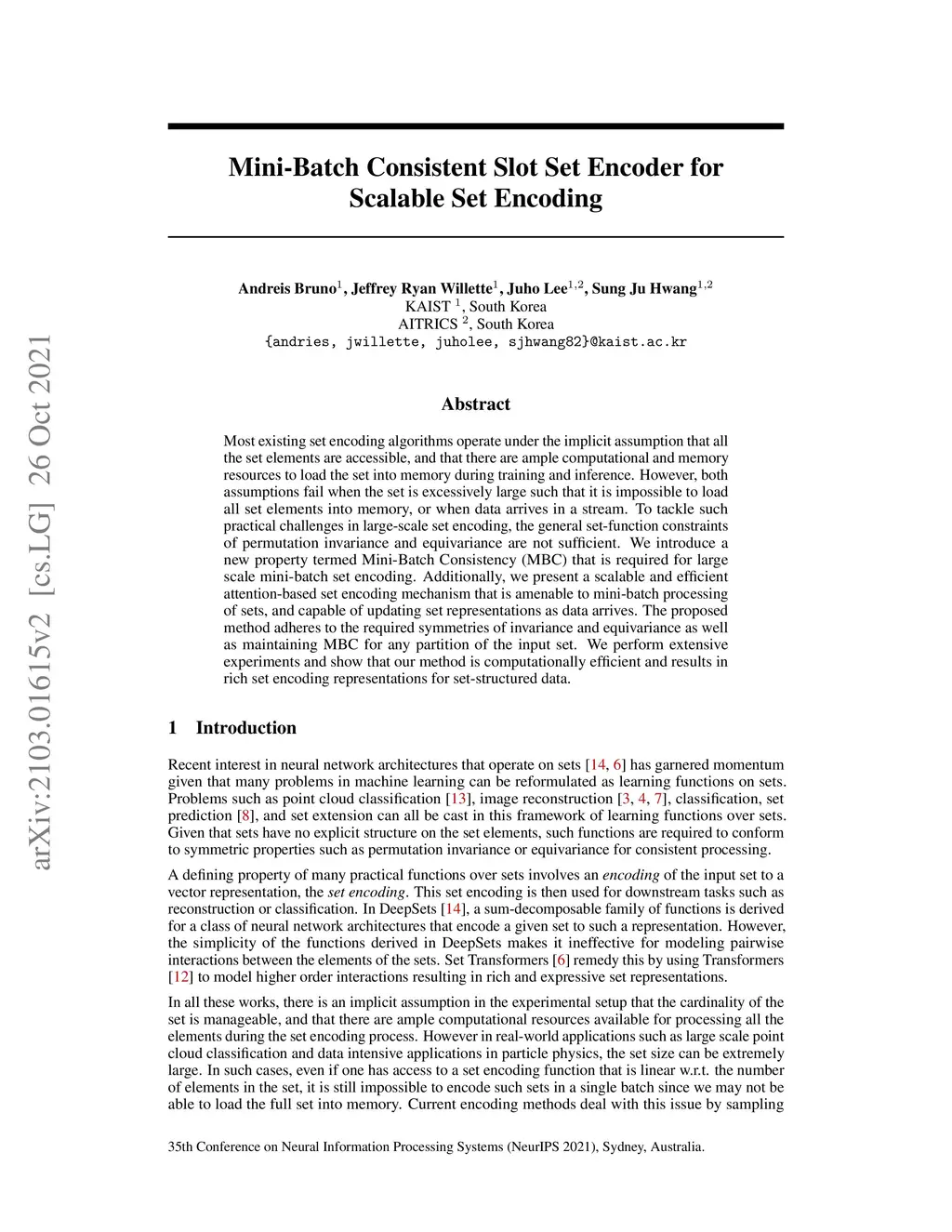 Mini-Batch Consistent Slot Set Encoder for Scalable Set Encoding