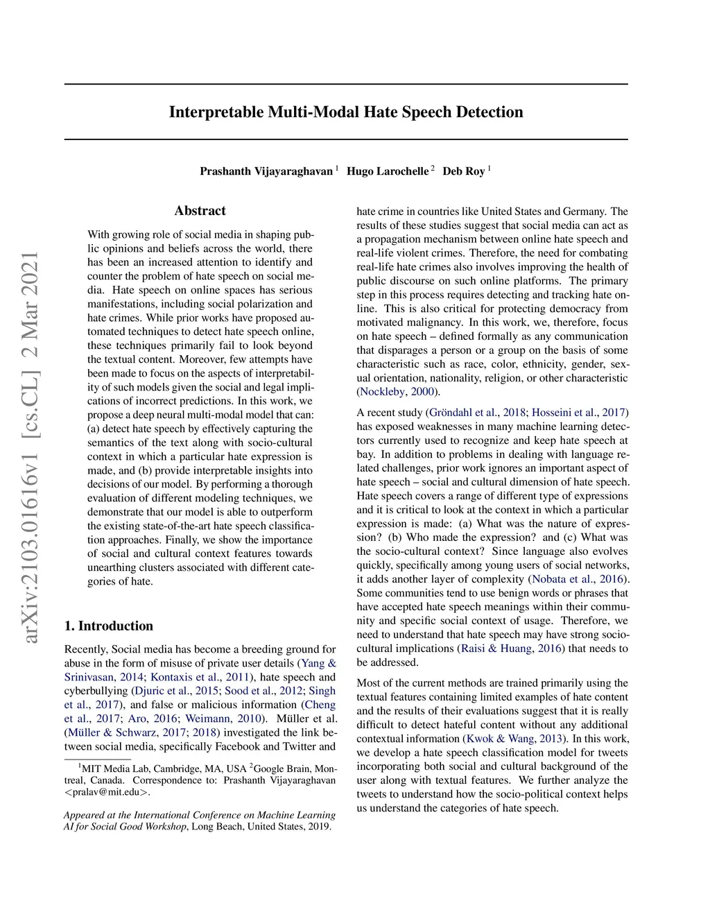 Interpretable Multi-Modal Hate Speech Detection