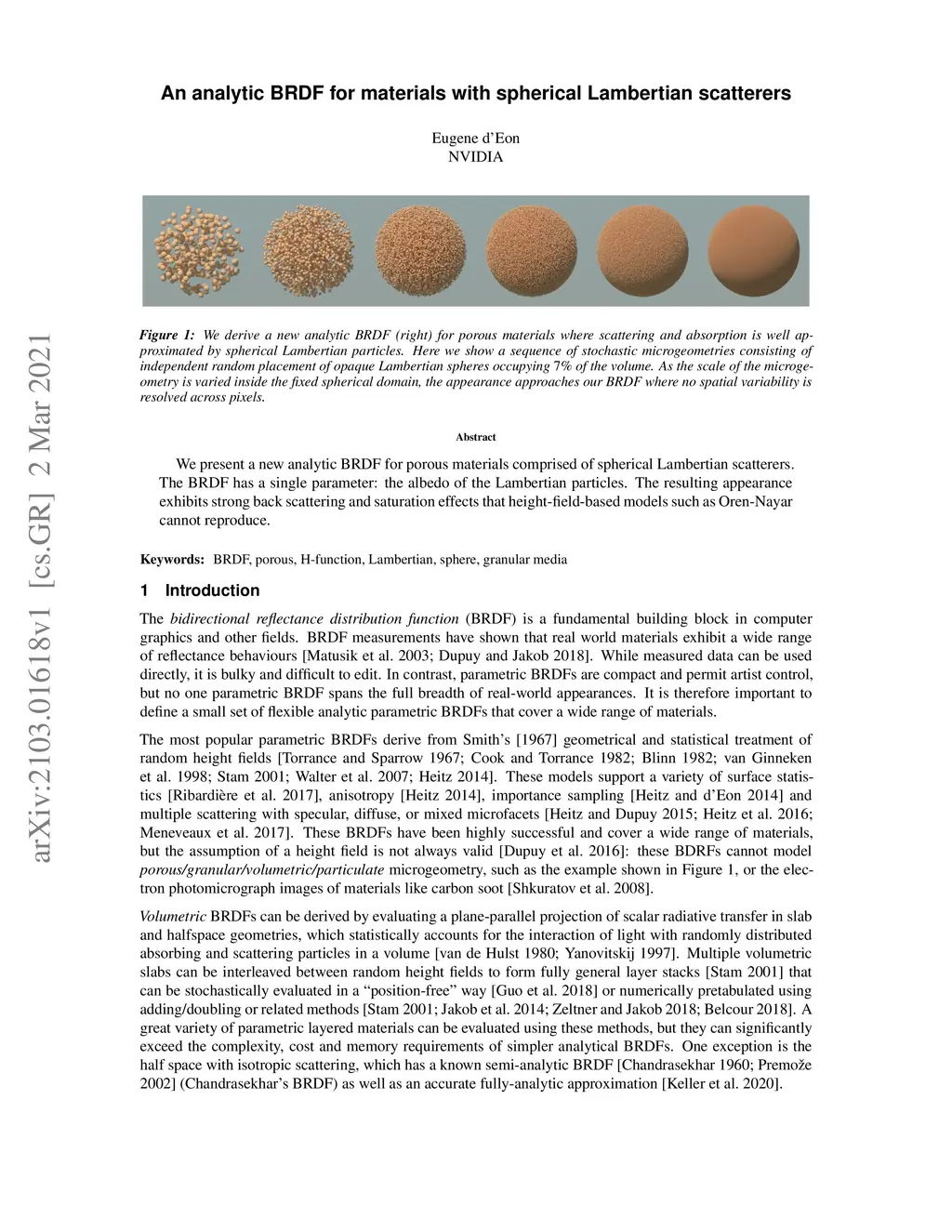 We present a new analytic BRDF for porous materials comprised of spherical Lambertian scatterers. The BRDF has a single parameter: the albedo of the Lambertian particles. The resulting appearance exhibits strong back scattering and saturation effects that height-field-based models such as Oren-Nayar cannot reproduce.