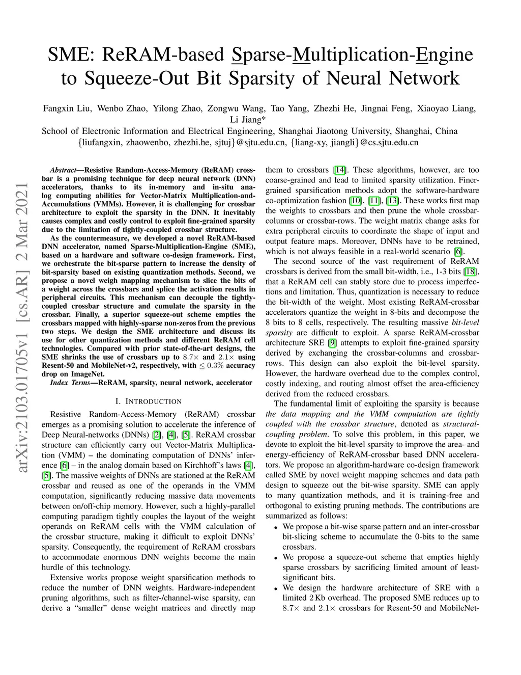 SME: ReRAM-based Sparse-Multiplication-Engine to Squeeze-Out Bit