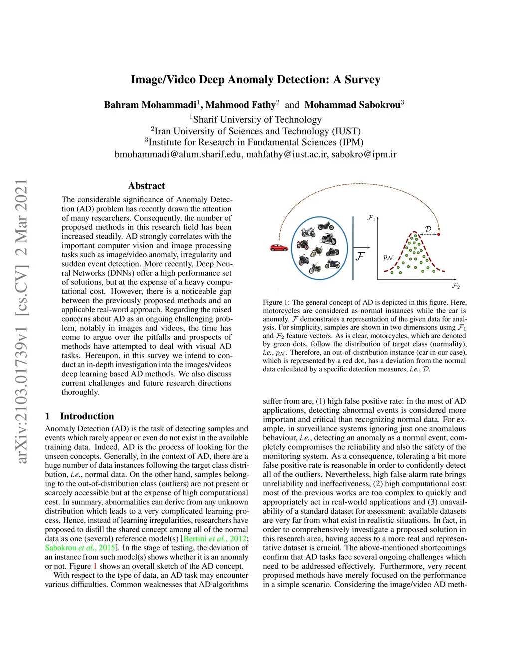 The considerable significance of Anomaly Detection (AD) problem has recently drawn the attention of many researchers. Consequently, the number of proposed methods in this research field has been increased steadily. AD strongly correlates with the important computer vision and image processing tasks such as image/video anomaly, irregularity and sudden event detection. More recently, Deep Neural Networks (DNNs) offer a high performance set of solutions, but at the expense of a heavy computational cost. However, there is a noticeable gap between the previously proposed methods and an applicable real-word approach. Regarding the raised concerns about AD as an ongoing challenging problem, notably in images and videos, the time has come to argue over the pitfalls and prospects of methods have attempted to deal with visual AD tasks. Hereupon, in this survey we intend to conduct an in-depth investigation into the images/videos deep learning based AD methods. We also discuss current challenges and future research directions thoroughly.