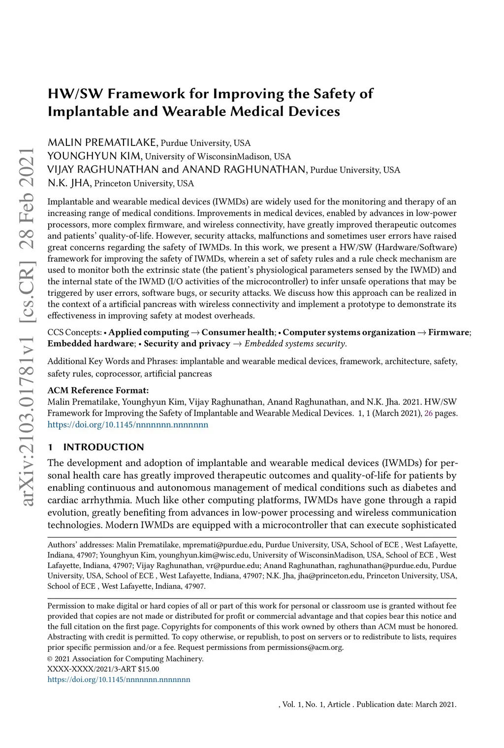HW/SW Framework for Improving the Safety of Implantable and Wearable
