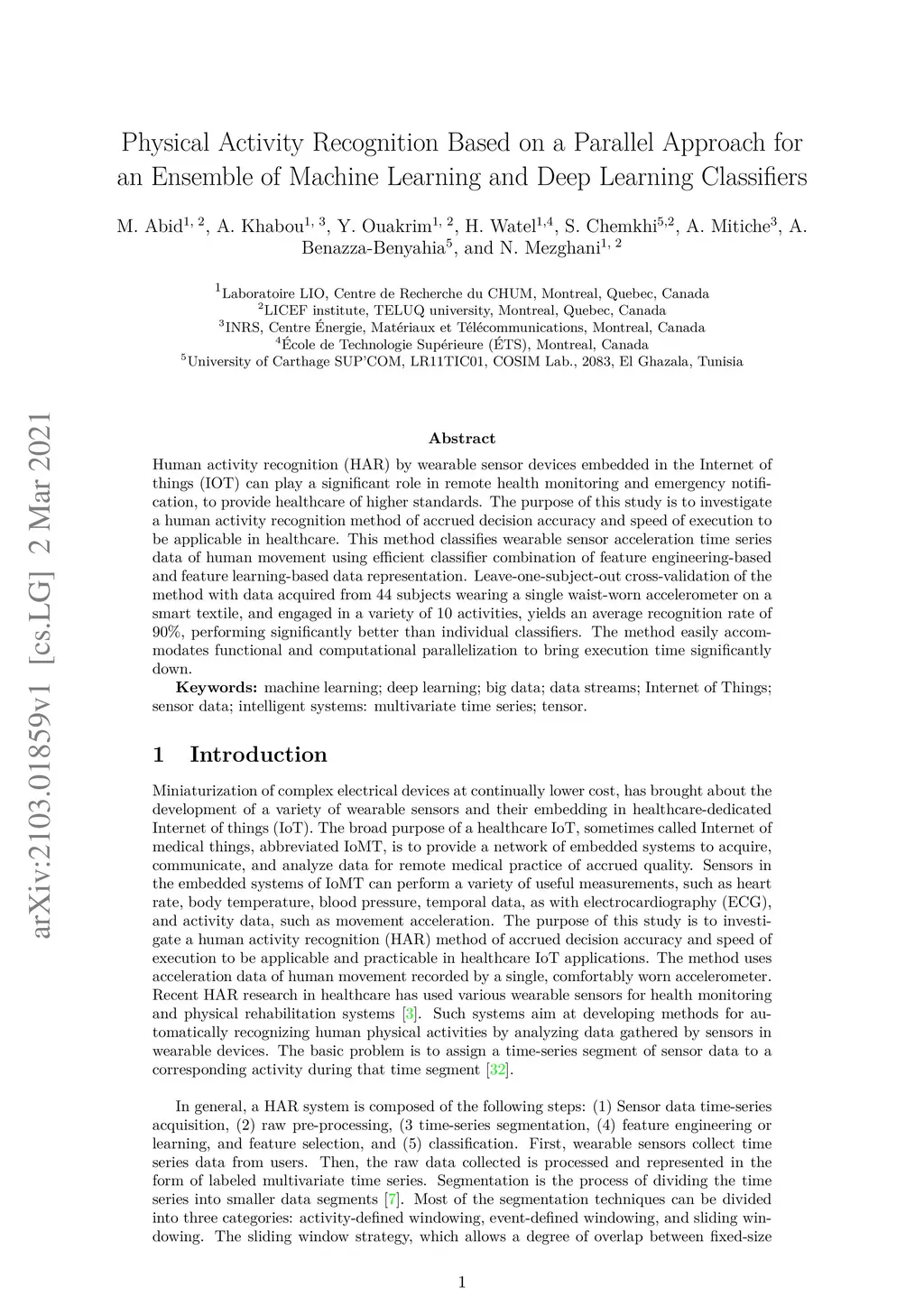 Physical Activity Recognition Based on a Parallel Approach for an