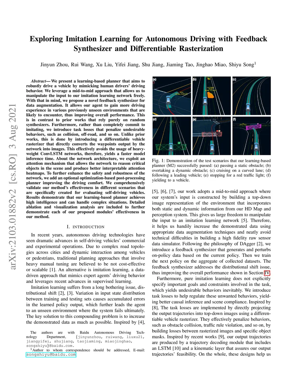 We present a learning-based planner that aims to robustly drive a vehicle by mimicking human drivers' driving behavior. We leverage a mid-to-mid approach that allows us to manipulate the input to our imitation learning network freely. With that in mind, we propose a novel feedback synthesizer for data augmentation. It allows our agent to gain more driving experience in various previously unseen environments that are likely to encounter, thus improving overall performance. This is in contrast to prior works that rely purely on random synthesizers. Furthermore, rather than completely commit to imitating, we introduce task losses that penalize undesirable behaviors, such as collision, off-road, and so on. Unlike prior works, this is done by introducing a differentiable vehicle rasterizer that directly converts the waypoints output by the network into images. This effectively avoids the usage of heavyweight ConvLSTM networks, therefore, yields a faster model inference time. About the network architecture, we exploit an attention mechanism that allows the network to reason critical objects in the scene and produce better interpretable attention heatmaps. To further enhance the safety and robustness of the network, we add an optional optimization-based post-processing planner improving the driving comfort. We comprehensively validate our method's effectiveness in different scenarios that are specifically created for evaluating self-driving vehicles. Results demonstrate that our learning-based planner achieves high intelligence and can handle complex situations. Detailed ablation and visualization analysis are included to further demonstrate each of our proposed modules' effectiveness in our method.
