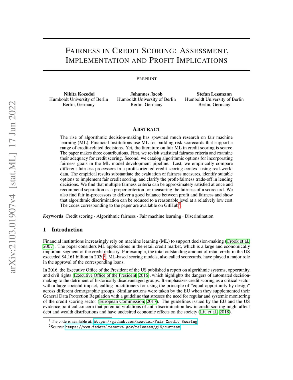 Fairness in Credit Scoring: Assessment, Implementation and Profit