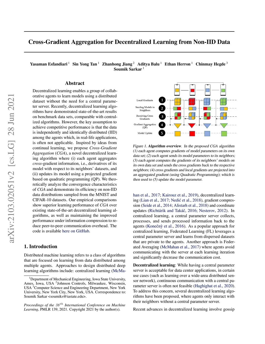 Cross-Gradient Aggregation for Decentralized Learning from Non-IID data