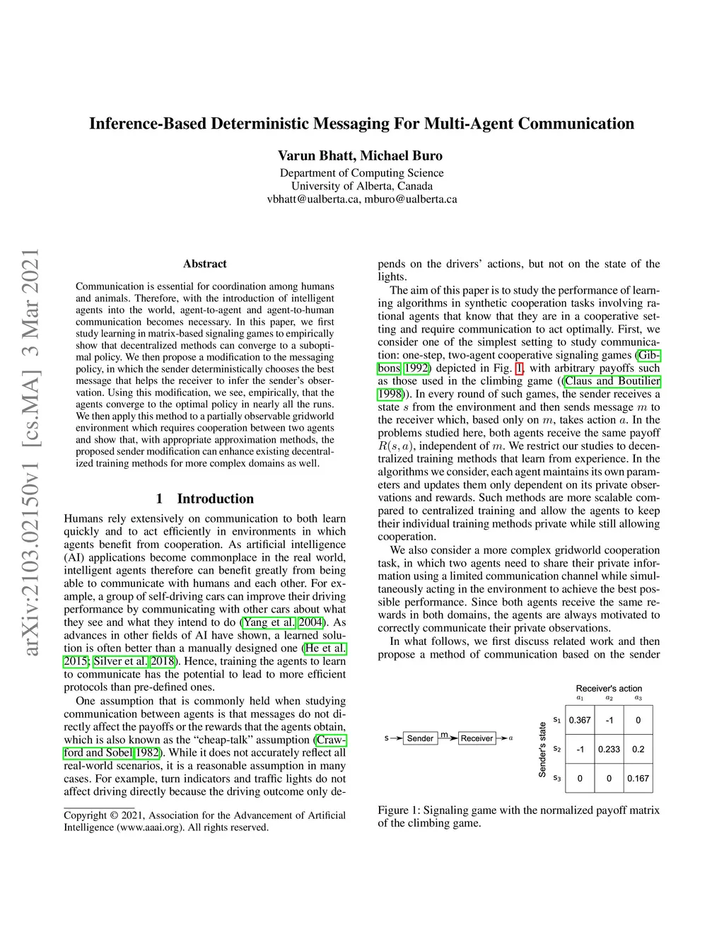 Communication is essential for coordination among humans and animals. Therefore, with the introduction of intelligent agents into the world, agent-to-agent and agent-to-human communication becomes necessary. In this paper, we first study learning in matrix-based signaling games to empirically show that decentralized methods can converge to a suboptimal policy. We then propose a modification to the messaging policy, in which the sender deterministically chooses the best message that helps the receiver to infer the sender's observation. Using this modification, we see, empirically, that the agents converge to the optimal policy in nearly all the runs. We then apply this method to a partially observable gridworld environment which requires cooperation between two agents and show that, with appropriate approximation methods, the proposed sender modification can enhance existing decentralized training methods for more complex domains as well.