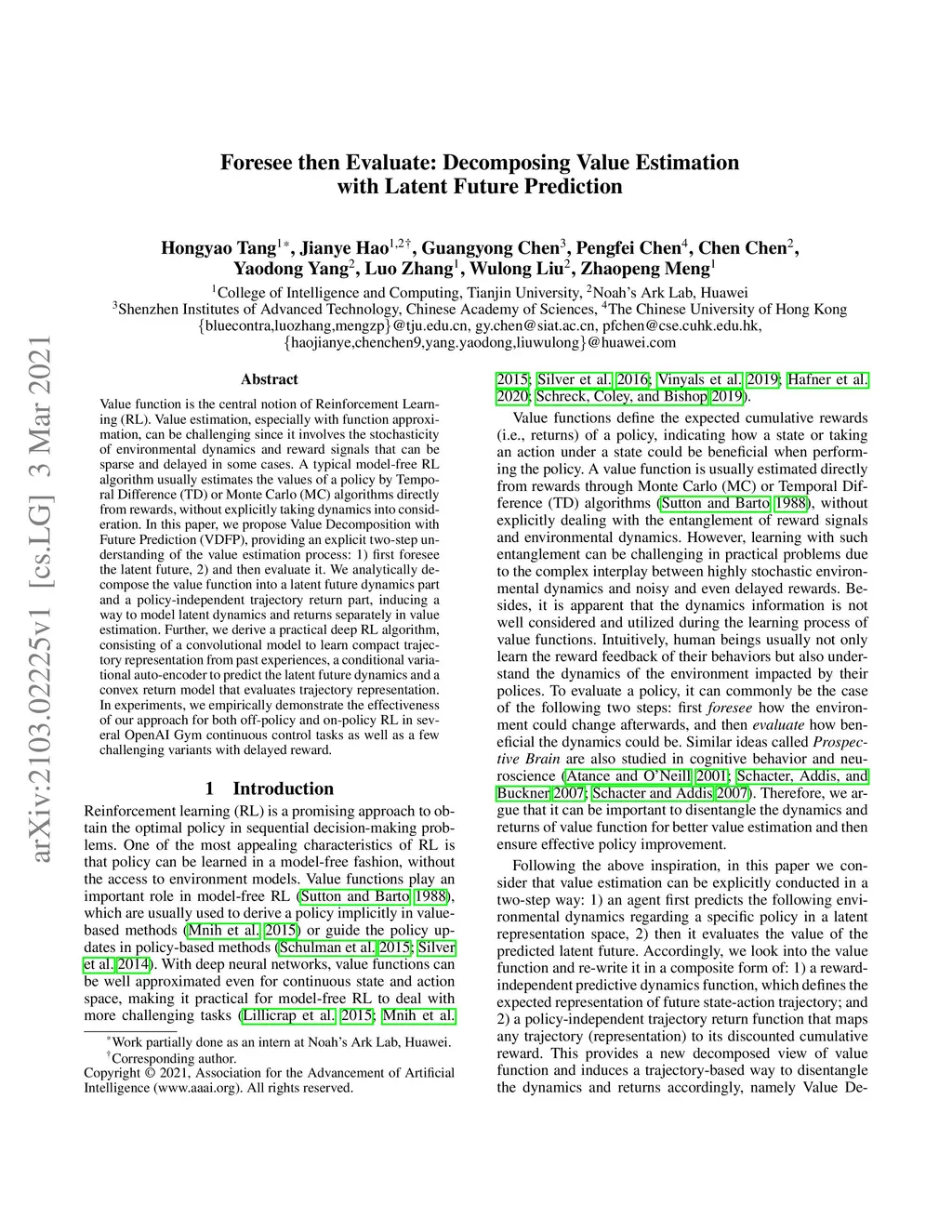 Foresee then Evaluate: Decomposing Value Estimation with Latent Future
