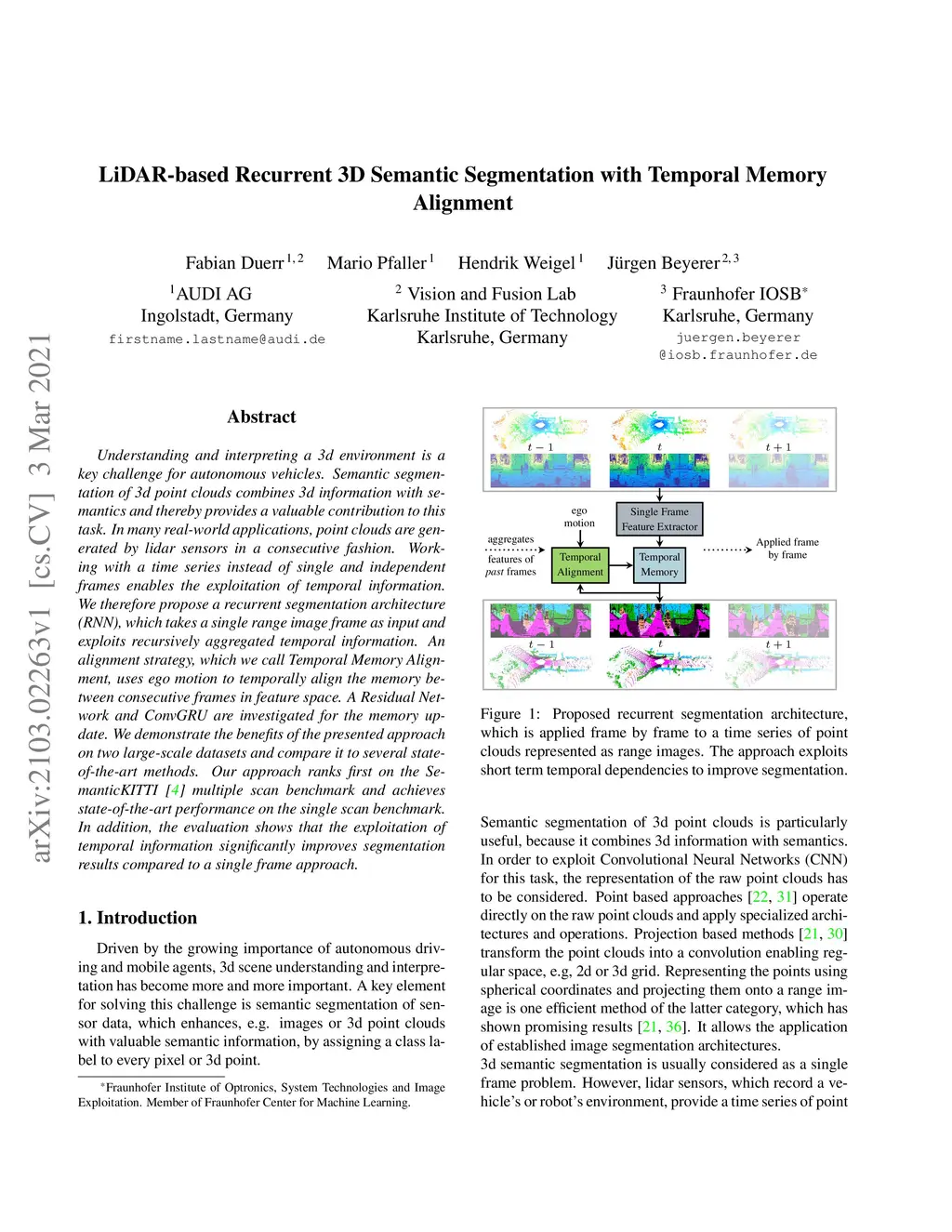 LiDAR-based Recurrent 3D Semantic Segmentation with Temporal Memory