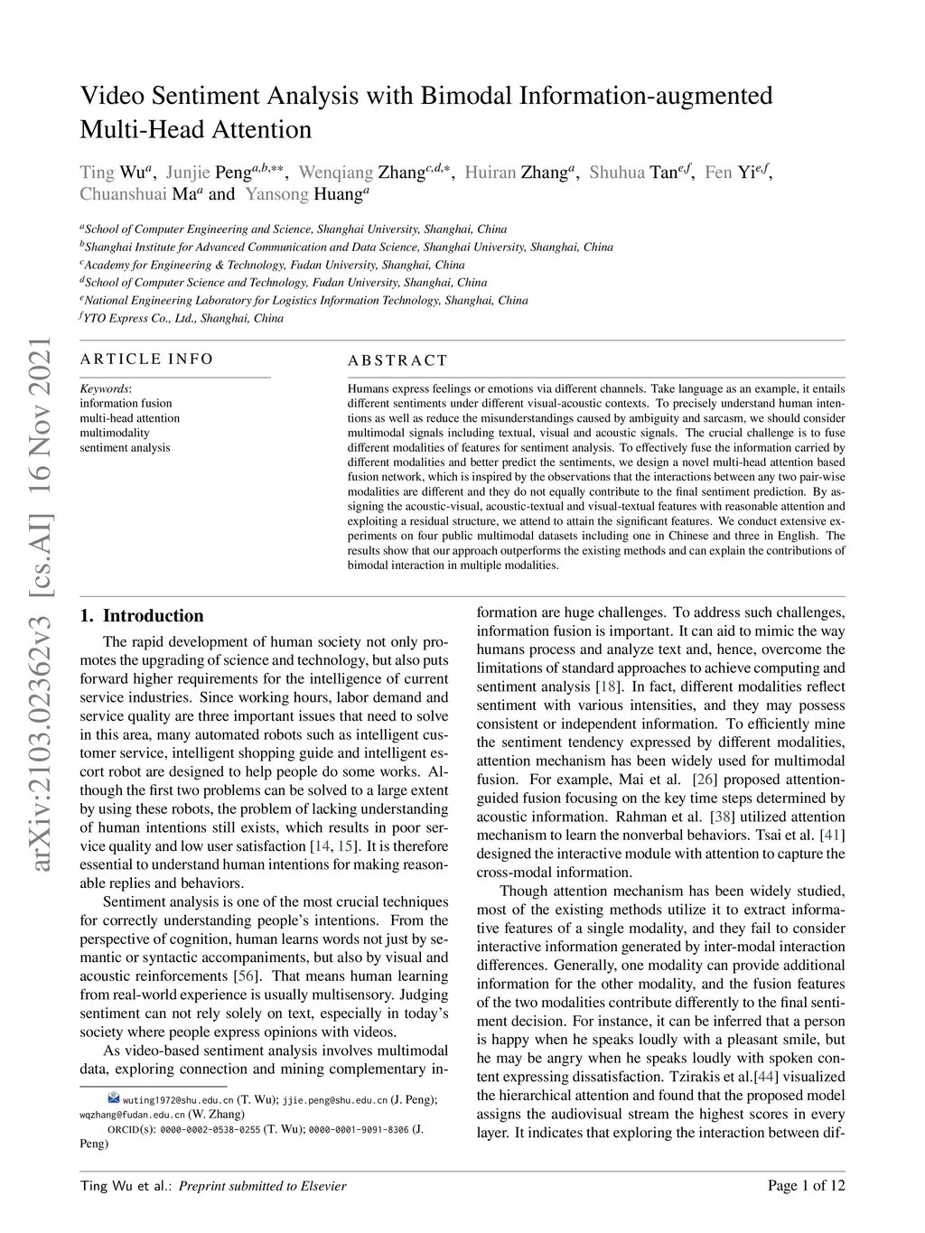 Video Sentiment Analysis with Bimodal Information-augmented Multi-Head