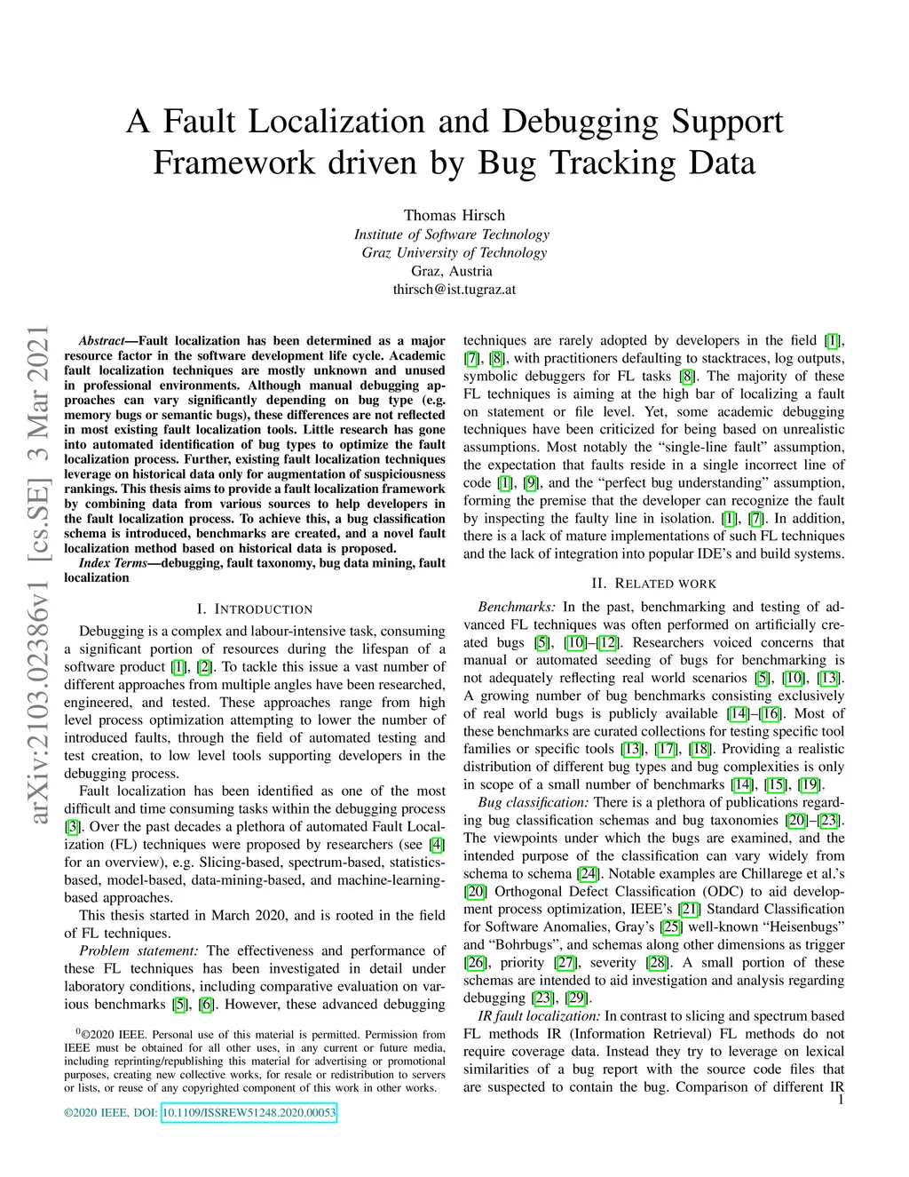 Fault localization has been determined as a major resource factor in the software development life cycle. Academic fault localization techniques are mostly unknown and unused in professional environments. Although manual debugging approaches can vary significantly depending on bug type (e.g. memory bugs or semantic bugs), these differences are not reflected in most existing fault localization tools. Little research has gone into automated identification of bug types to optimize the fault localization process. Further, existing fault localization techniques leverage on historical data only for augmentation of suspiciousness rankings. This thesis aims to provide a fault localization framework by combining data from various sources to help developers in the fault localization process. To achieve this, a bug classification schema is introduced, benchmarks are created, and a novel fault localization method based on historical data is proposed.