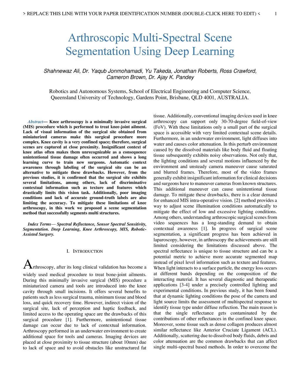 Arthroscopic Multi-Spectral Scene Segmentation Using Deep Learning