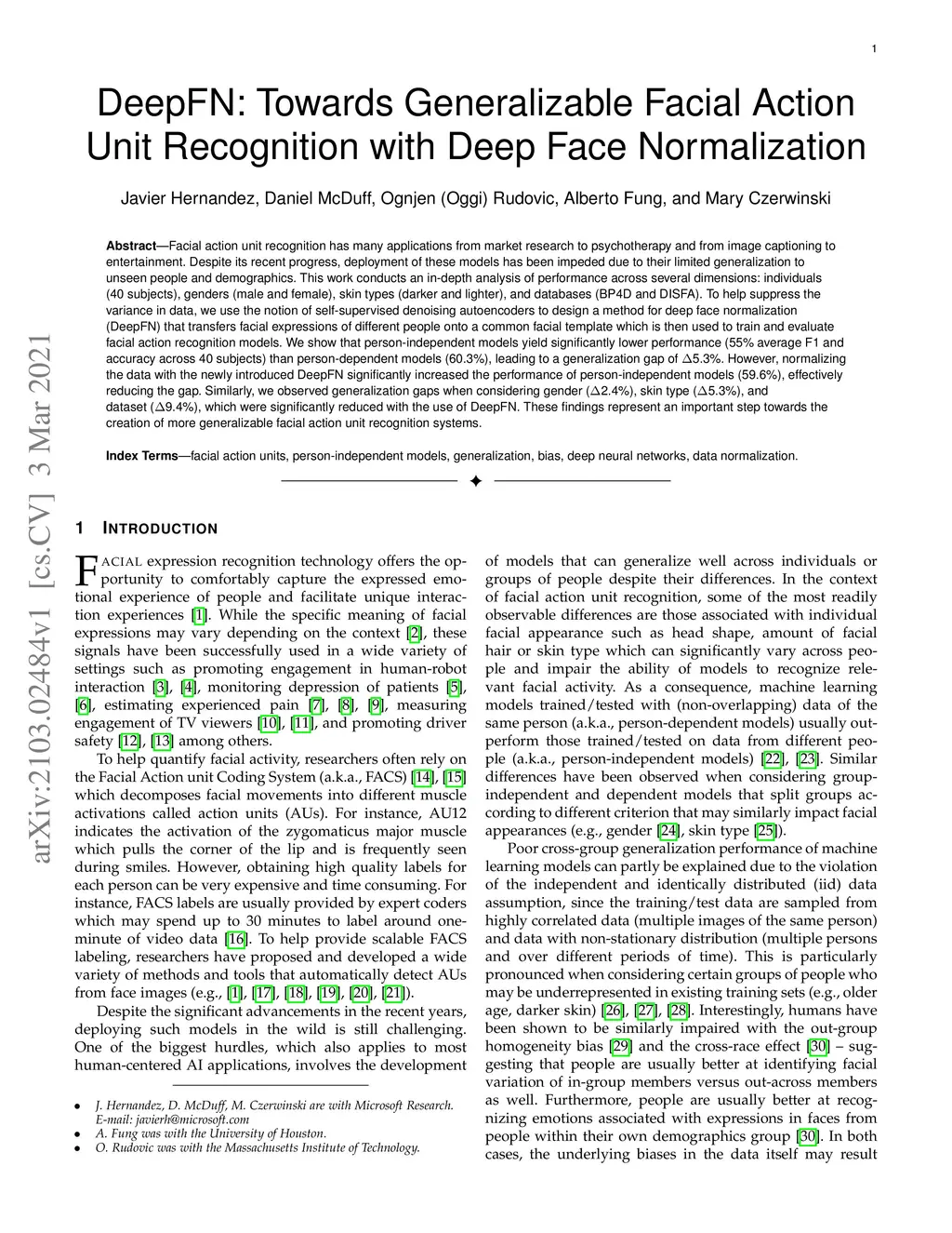 DeepFN: Towards Generalizable Facial Action Unit Recognition with Deep