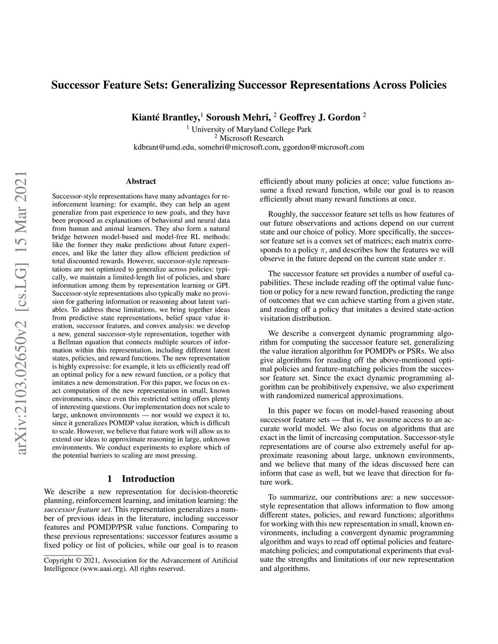 Successor-style representations have many advantages for reinforcement learning: for example, they can help an agent generalize from past experience to new goals, and they have been proposed as explanations of behavioral and neural data from human and animal learners. They also form a natural bridge between model-based and model-free RL methods: like the former they make predictions about future experiences, and like the latter they allow efficient prediction of total discounted rewards. However, successor-style representations are not optimized to generalize across policies: typically, we maintain a limited-length list of policies, and share information among them by representation learning or GPI. Successor-style representations also typically make no provision for gathering information or reasoning about latent variables. To address these limitations, we bring together ideas from predictive state representations, belief space value iteration, successor features, and convex analysis: we develop a new, general successor-style representation, together with a Bellman equation that connects multiple sources of information within this representation, including different latent states, policies, and reward functions. The new representation is highly expressive: for example, it lets us efficiently read off an optimal policy for a new reward function, or a policy that imitates a new demonstration. For this paper, we focus on exact computation of the new representation in small, known environments, since even this restricted setting offers plenty of interesting questions. Our implementation does not scale to large, unknown environments -- nor would we expect it to, since it generalizes POMDP value iteration, which is difficult to scale. However, we believe that future work will allow us to extend our ideas to approximate reasoning in large, unknown environments.