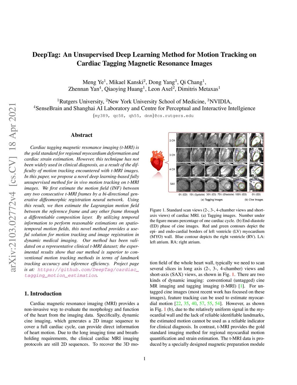 DeepTag: An Unsupervised Deep Learning Method for Motion Tracking on