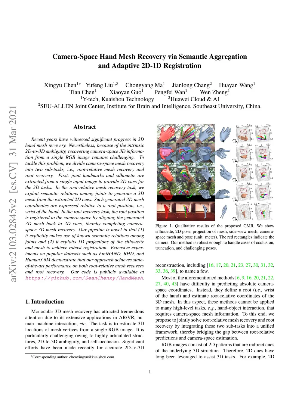 Camera-Space Hand Mesh Recovery via Semantic Aggregation and Adaptive