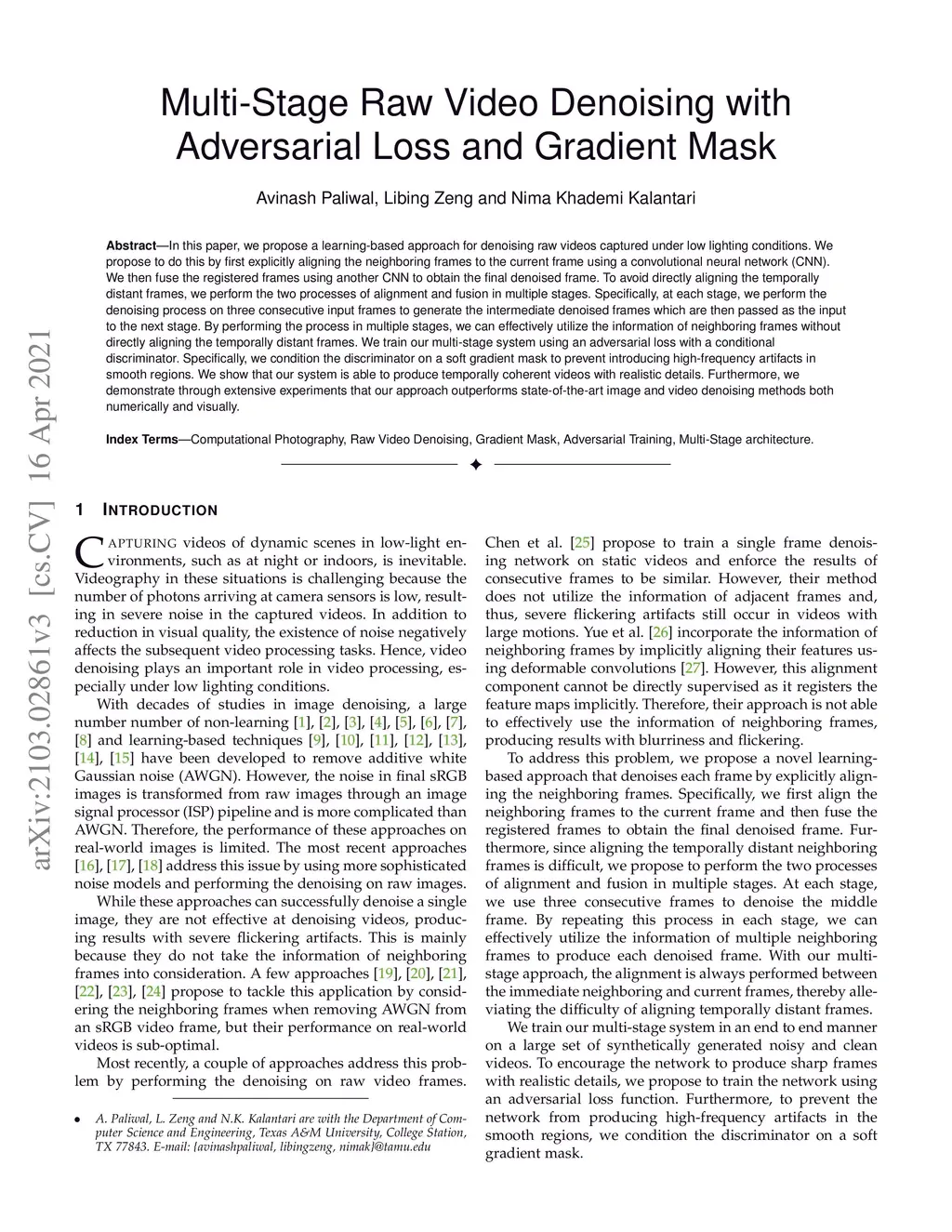Multi-Stage Raw Video Denoising with Adversarial Loss and Gradient Mask