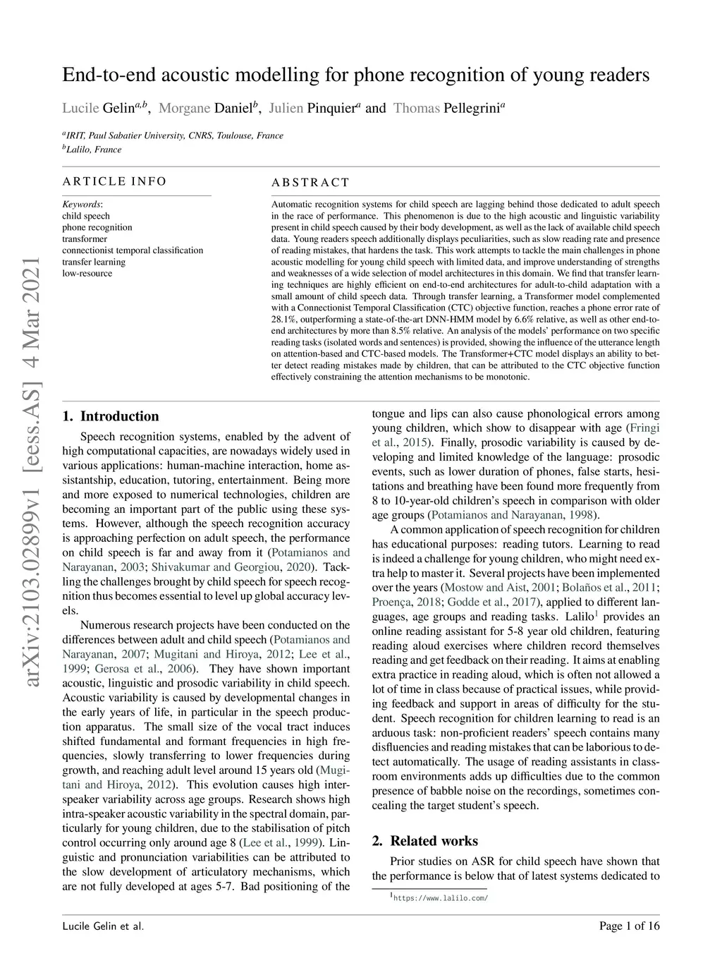Automatic recognition systems for child speech are lagging behind those dedicated to adult speech in the race of performance. This phenomenon is due to the high acoustic and linguistic variability present in child speech caused by their body development, as well as the lack of available child speech data. Young readers speech additionally displays peculiarities, such as slow reading rate and presence of reading mistakes, that hardens the task. This work attempts to tackle the main challenges in phone acoustic modelling for young child speech with limited data, and improve understanding of strengths and weaknesses of a wide selection of model architectures in this domain. We find that transfer learning techniques are highly efficient on end-to-end architectures for adult-to-child adaptation with a small amount of child speech data. Through transfer learning, a Transformer model complemented with a Connectionist Temporal Classification (CTC) objective function, reaches a phone error rate of 28.1%, outperforming a state-of-the-art DNN-HMM model by 6.6% relative, as well as other end-to-end architectures by more than 8.5% relative. An analysis of the models' performance on two specific reading tasks (isolated words and sentences) is provided, showing the influence of the utterance length on attention-based and CTC-based models. The Transformer+CTC model displays an ability to better detect reading mistakes made by children, that can be attributed to the CTC objective function effectively constraining the attention mechanisms to be monotonic.