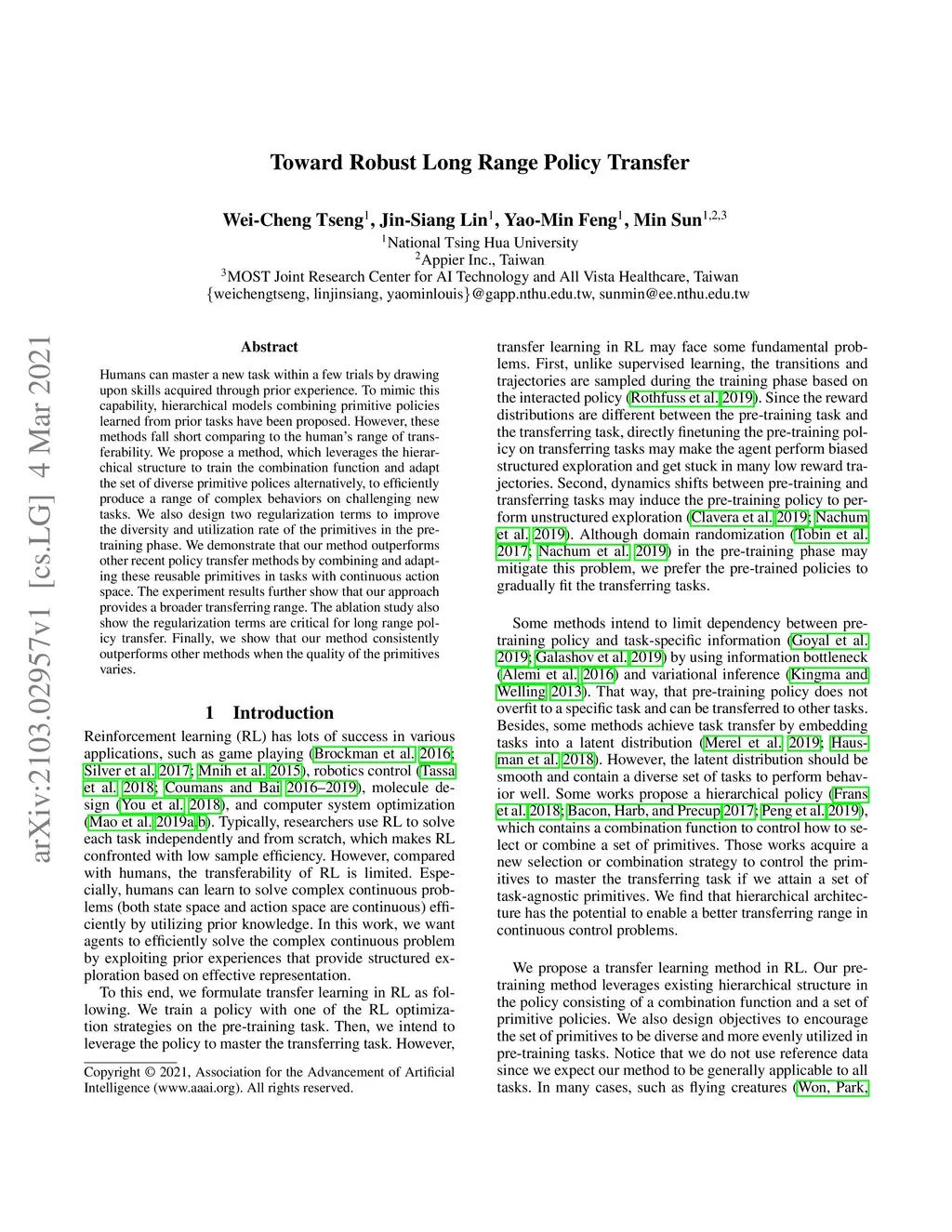 Toward Robust Long Range Policy Transfer