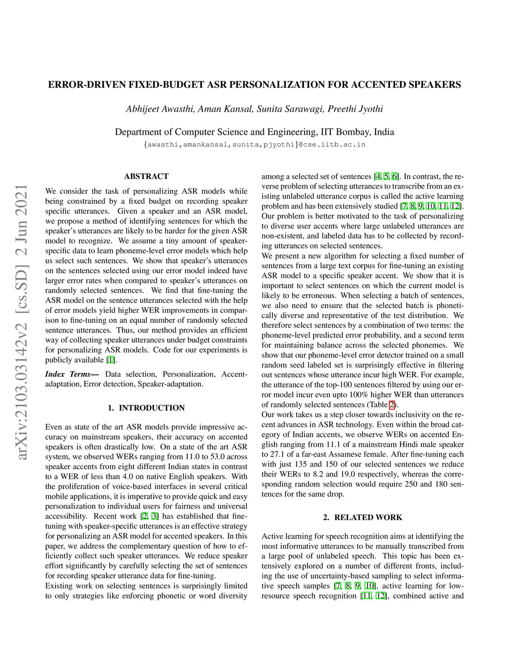 We consider the task of personalizing ASR models while being constrained by a fixed budget on recording speaker-specific utterances. Given a speaker and an ASR model, we propose a method of identifying sentences for which the speaker's utterances are likely to be harder for the given ASR model to recognize. We assume a tiny amount of speaker-specific data to learn phoneme-level error models which help us select such sentences. We show that speaker's utterances on the sentences selected using our error model indeed have larger error rates when compared to speaker's utterances on randomly selected sentences. We find that fine-tuning the ASR model on the sentence utterances selected with the help of error models yield higher WER improvements in comparison to fine-tuning on an equal number of randomly selected sentence utterances. Thus, our method provides an efficient way of collecting speaker utterances under budget constraints for personalizing ASR models.