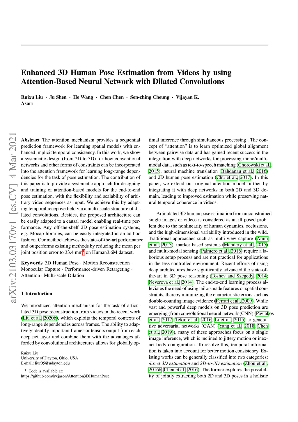 The attention mechanism provides a sequential prediction framework for learning spatial models with enhanced implicit temporal consistency. In this work, we show a systematic design (from 2D to 3D) for how conventional networks and other forms of constraints can be incorporated into the attention framework for learning long-range dependencies for the task of pose estimation. The contribution of this paper is to provide a systematic approach for designing and training of attention-based models for the end-to-end pose estimation, with the flexibility and scalability of arbitrary video sequences as input. We achieve this by adapting temporal receptive field via a multi-scale structure of dilated convolutions. Besides, the proposed architecture can be easily adapted to a causal model enabling real-time performance. Any off-the-shelf 2D pose estimation systems, e.g. Mocap libraries, can be easily integrated in an ad-hoc fashion. Our method achieves the state-of-the-art performance and outperforms existing methods by reducing the mean per joint position error to 33.4 mm on Human3.6M dataset.