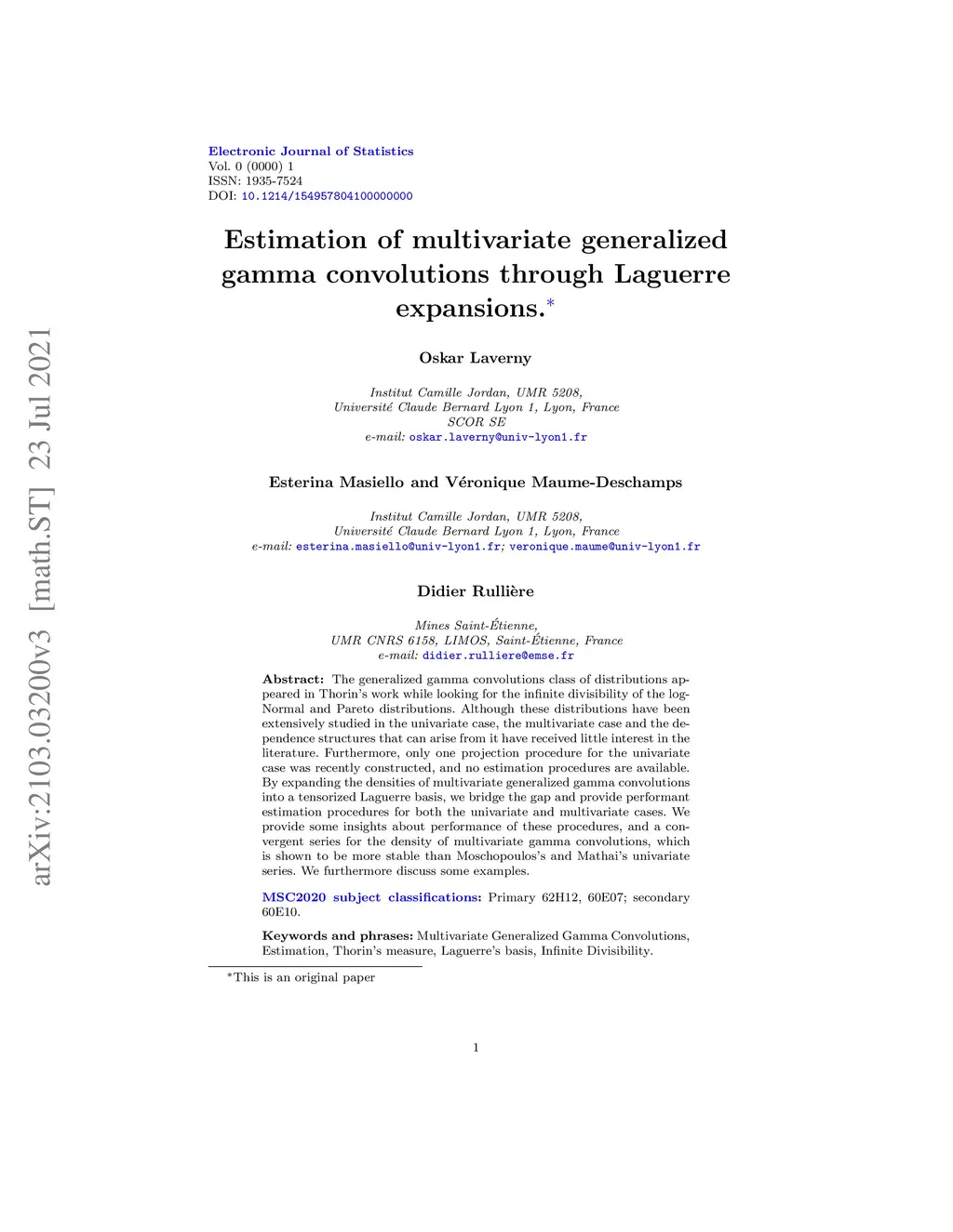 The generalized gamma convolution class of distribution appeared in Thorin's work while looking for the infinite divisibility of the log-Normal and Pareto distributions. Although these distributions have been extensively studied in the univariate case, the multivariate case and the dependence structures that can arise from it have received little interest in the literature. Furthermore, only one projection procedure for the univariate case was recently constructed, and no estimation procedure are available. By expending the densities of multivariate generalized gamma convolutions into a tensorized Laguerre basis, we bridge the gap and provide performant estimations procedures for both the univariate and multivariate cases. We provide some insights about performance of these procedures, and a convergent series for the density of multivariate gamma convolutions, which is shown to be more stable than Moschopoulos's and Mathai's univariate series. We furthermore discuss some examples.