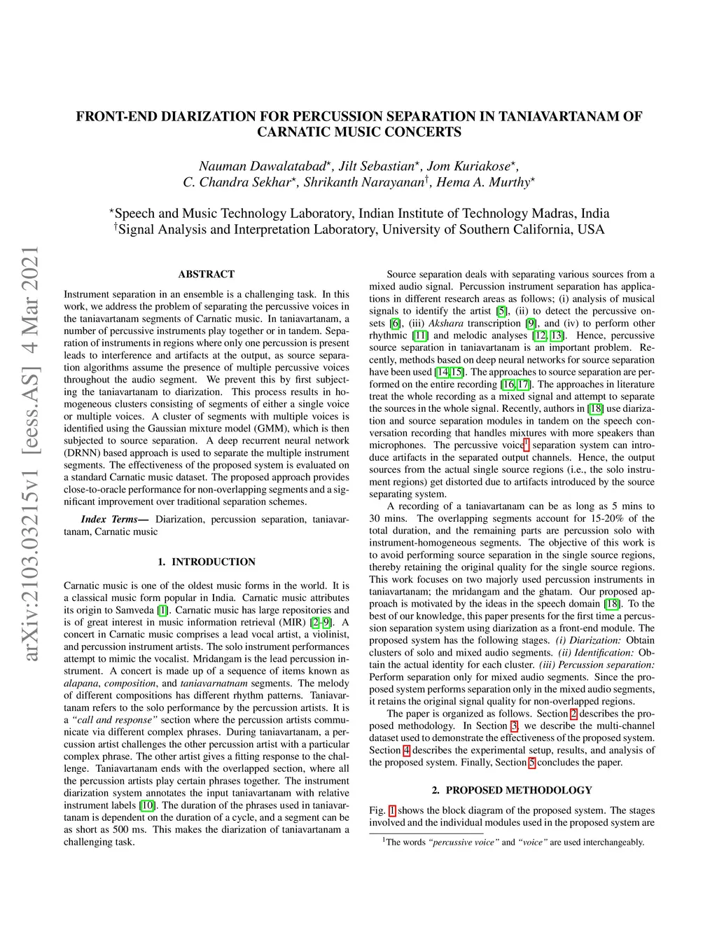Front-end Diarization for Percussion Separation in Taniavartanam of