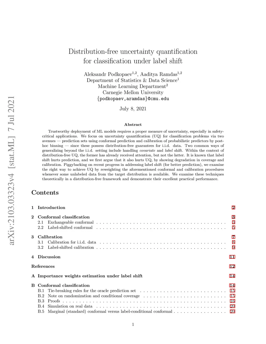 Trustworthy deployment of ML models requires a proper measure of uncertainty, especially in safety-critical applications. We focus on uncertainty quantification (UQ) for classification problems via two avenues -- prediction sets using conformal prediction and calibration of probabilistic predictors by post-hoc binning -- since these possess distribution-free guarantees for i.i.d. data. Two common ways of generalizing beyond the i.i.d. setting include handling covariate and label shift. Within the context of distribution-free UQ, the former has already received attention, but not the latter. It is known that label shift hurts prediction, and we first argue that it also hurts UQ, by showing degradation in coverage and calibration. Piggybacking on recent progress in addressing label shift (for better prediction), we examine the right way to achieve UQ by reweighting the aforementioned conformal and calibration procedures whenever some unlabeled data from the target distribution is available. We examine these techniques theoretically in a distribution-free framework and demonstrate their excellent practical performance.