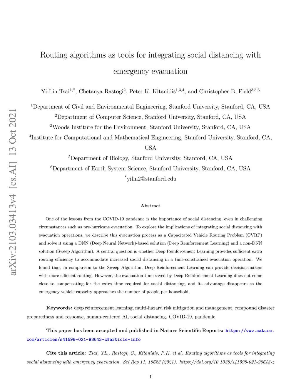 One of the lessons from the COVID-19 pandemic is the importance of social distancing, even in challenging circumstances such as pre-hurricane evacuation. To explore the implications of integrating social distancing with evacuation operations, we describe this evacuation process as a Capacitated Vehicle Routing Problem (CVRP) and solve it using a DNN (Deep Neural Network)-based solution (Deep Reinforcement Learning) and a non-DNN solution (Sweep Algorithm). A central question is whether Deep Reinforcement Learning provides sufficient extra routing efficiency to accommodate increased social distancing in a time-constrained evacuation operation. We found that, in comparison to the Sweep Algorithm, Deep Reinforcement Learning can provide decision-makers with more efficient routing. However, the evacuation time saved by Deep Reinforcement Learning does not come close to compensating for the extra time required for social distancing, and its advantage disappears as the emergency vehicle capacity approaches the number of people per household.