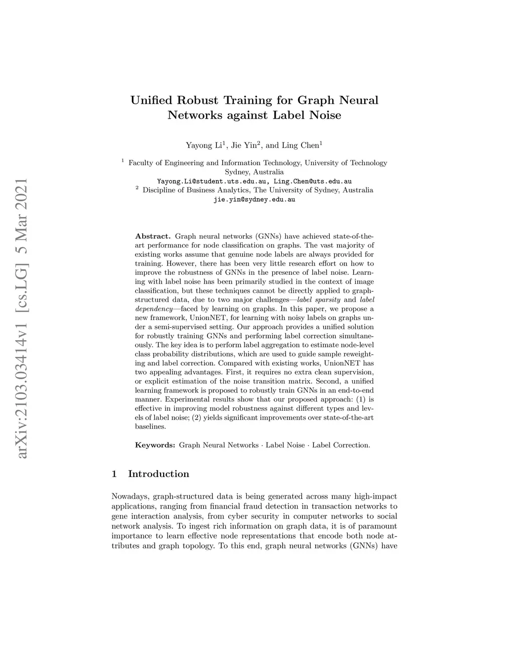 Graph neural networks (GNNs) have achieved state-of-the-art performance for node classification on graphs. The vast majority of existing works assume that genuine node labels are always provided for training. However, there has been very little research effort on how to improve the robustness of GNNs in the presence of label noise. Learning with label noise has been primarily studied in the context of image classification, but these techniques cannot be directly applied to graph-structured data, due to two major challenges -- label sparsity and label dependency -- faced by learning on graphs. In this paper, we propose a new framework, UnionNET, for learning with noisy labels on graphs under a semi-supervised setting. Our approach provides a unified solution for robustly training GNNs and performing label correction simultaneously. The key idea is to perform label aggregation to estimate node-level class probability distributions, which are used to guide sample reweighting and label correction. Compared with existing works, UnionNET has two appealing advantages. First, it requires no extra clean supervision, or explicit estimation of the noise transition matrix. Second, a unified learning framework is proposed to robustly train GNNs in an end-to-end manner. Experimental results show that our proposed approach: (1) is effective in improving model robustness against different types and levels of label noise; (2) yields significant improvements over state-of-the-art baselines.