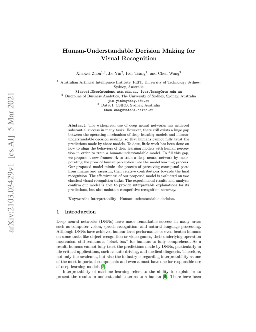 Human-Understandable Decision Making for Visual Recognition