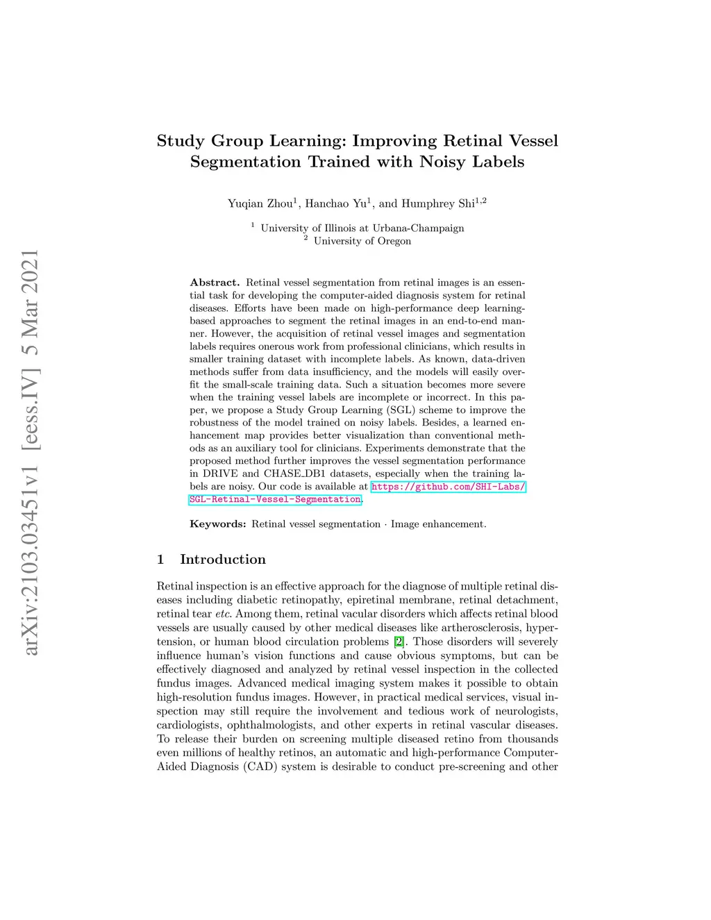 Study Group Learning: Improving Retinal Vessel Segmentation Trained with