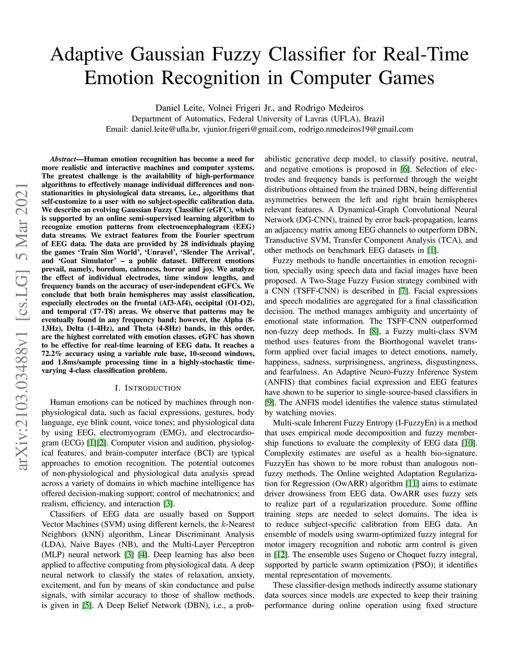 Adaptive Gaussian Fuzzy Classifier for Real-Time Emotion Recognition in