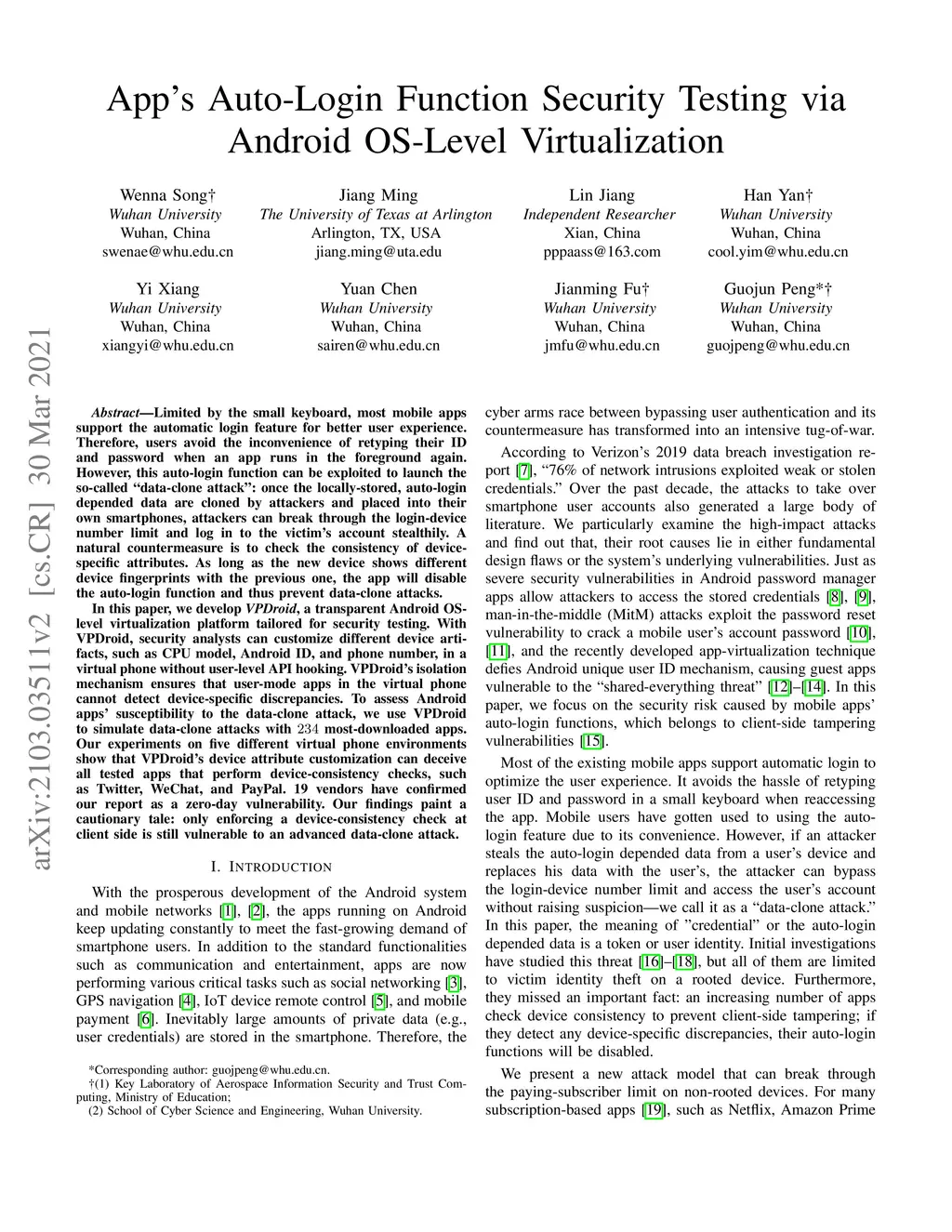 Limited by the small keyboard, most mobile apps support the automatic login feature for better user experience. Therefore, users avoid the inconvenience of retyping their ID and password when an app runs in the foreground again. However, this auto-login function can be exploited to launch the so-called "data-clone attack": once the locally-stored, auto-login depended data are cloned by attackers and placed into their own smartphones, attackers can break through the login-device number limit and log in to the victim's account stealthily. A natural countermeasure is to check the consistency of devicespecific attributes. As long as the new device shows different device fingerprints with the previous one, the app will disable the auto-login function and thus prevent data-clone attacks. In this paper, we develop VPDroid, a transparent Android OS-level virtualization platform tailored for security testing. With VPDroid, security analysts can customize different device artifacts, such as CPU model, Android ID, and phone number, in a virtual phone without user-level API hooking. VPDroid's isolation mechanism ensures that user-mode apps in the virtual phone cannot detect device-specific discrepancies. To assess Android apps' susceptibility to the data-clone attack, we use VPDroid to simulate data-clone attacks with 234 most-downloaded apps. Our experiments on five different virtual phone environments show that VPDroid's device attribute customization can deceive all tested apps that perform device-consistency checks, such as Twitter, WeChat, and PayPal. 19 vendors have confirmed our report as a zero-day vulnerability. Our findings paint a cautionary tale: only enforcing a device-consistency check at client side is still vulnerable to an advanced data-clone attack.