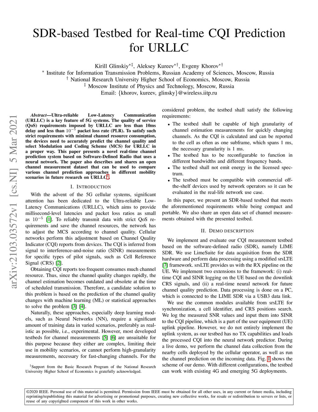 SDR-based Testbed for Real-time CQI Prediction for URLLC