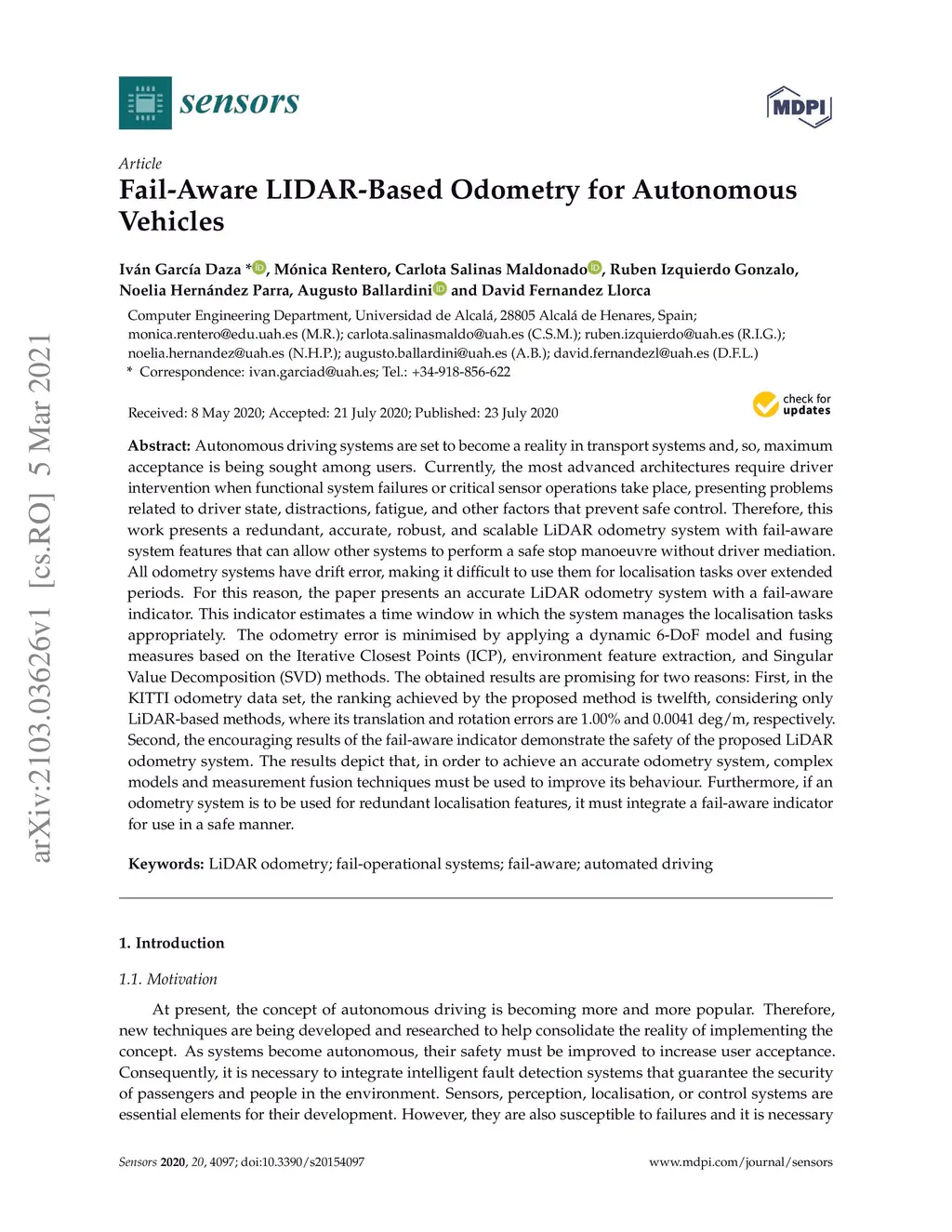 Fail-Aware LIDAR-Based Odometry for Autonomous Vehicles