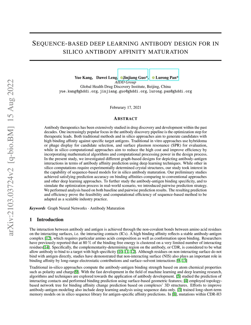 Antibody therapeutics has been extensively studied in drug discovery and development within the past decades. One increasingly popular focus in the antibody discovery pipeline is the optimization step for therapeutic leads. Both traditional methods and in silico approaches aim to generate candidates with high binding affinity against specific target antigens. Traditional in vitro approaches use hybridoma or phage display for candidate selection, and surface plasmon resonance (SPR) for evaluation, while in silico computational approaches aim to reduce the high cost and improve efficiency by incorporating mathematical algorithms and computational processing power in the design process. In the present study, we investigated different graph-based designs for depicting antibody-antigen interactions in terms of antibody affinity prediction using deep learning techniques. While other in silico computations require experimentally determined crystal structures, our study took interest in the capability of sequence-based models for in silico antibody maturation. Our preliminary studies achieved satisfying prediction accuracy on binding affinities comparing to conventional approaches and other deep learning approaches. To further study the antibody-antigen binding specificity, and to simulate the optimization process in real-world scenario, we introduced pairwise prediction strategy. We performed analysis based on both baseline and pairwise prediction results. The resulting prediction and efficiency prove the feasibility and computational efficiency of sequence-based method to be adapted as a scalable industry practice.