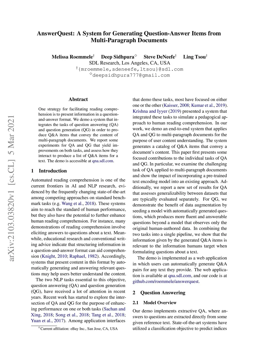 AnswerQuest: A System for Generating Question-Answer Items from