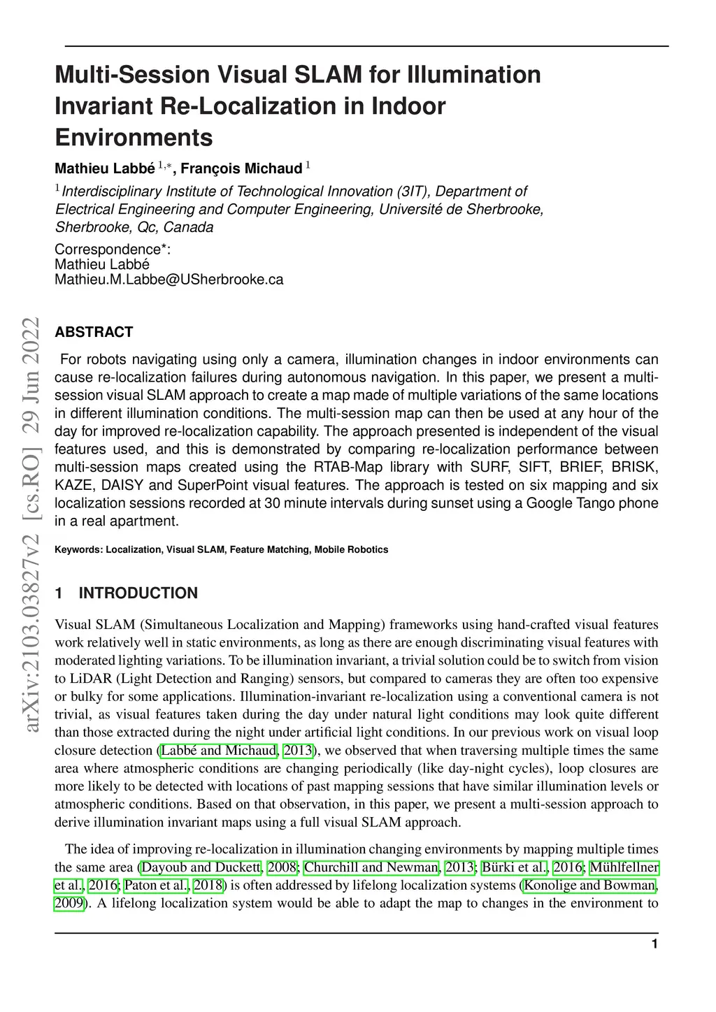 Multi-Session Visual SLAM for Illumination Invariant Re-Localization in