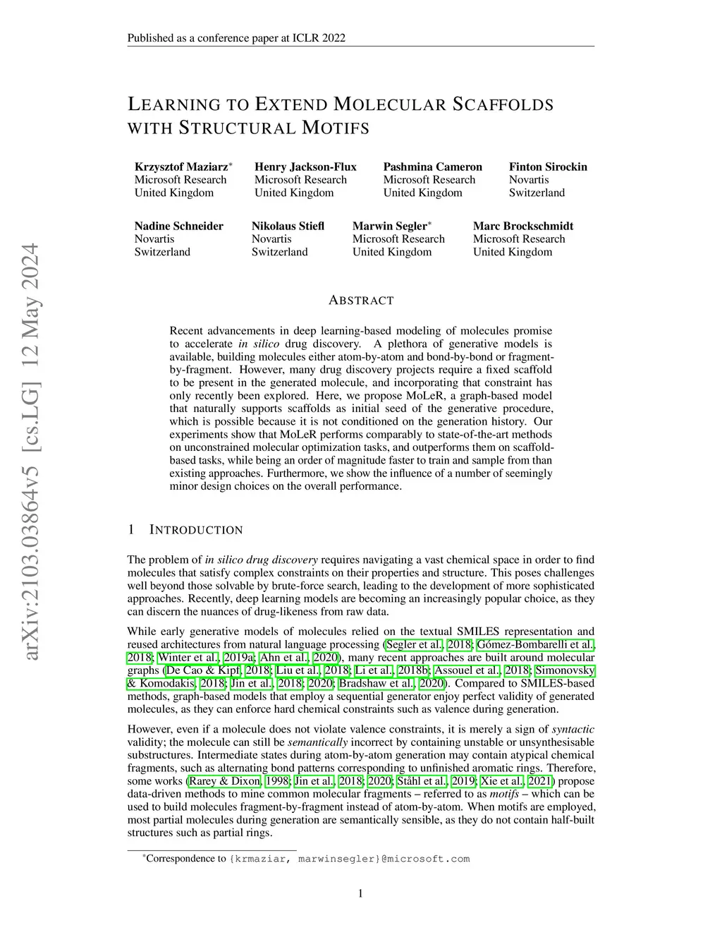 Recent advancements in deep learning-based modeling of molecules promise to accelerate in silico drug discovery. A plethora of generative models is available, building molecules either atom-by-atom and bond-by-bond or fragment-by-fragment. However, many drug discovery projects require a fixed scaffold to be present in the generated molecule, and incorporating that constraint has only recently been explored. Here, we propose MoLeR, a graph-based model that naturally supports scaffolds as initial seed of the generative procedure, which is possible because it is not conditioned on the generation history. Our experiments show that MoLeR performs comparably to state-of-the-art methods on unconstrained molecular optimization tasks, and outperforms them on scaffold-based tasks, while being an order of magnitude faster to train and sample from than existing approaches. Furthermore, we show the influence of a number of seemingly minor design choices on the overall performance.