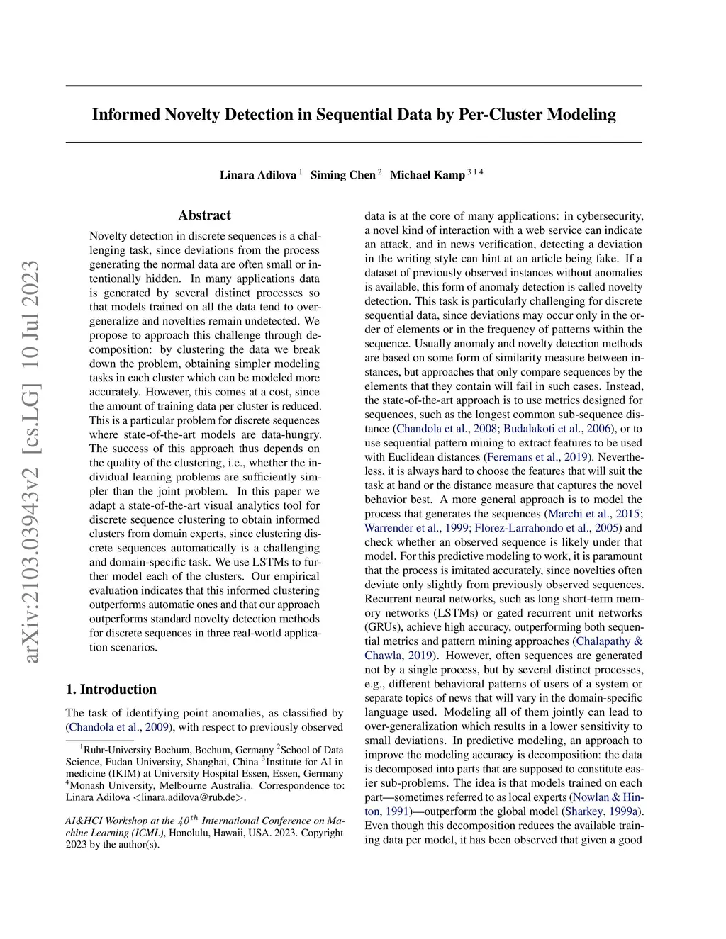 Novelty Detection in Sequential Data by Informed Clustering and Modeling