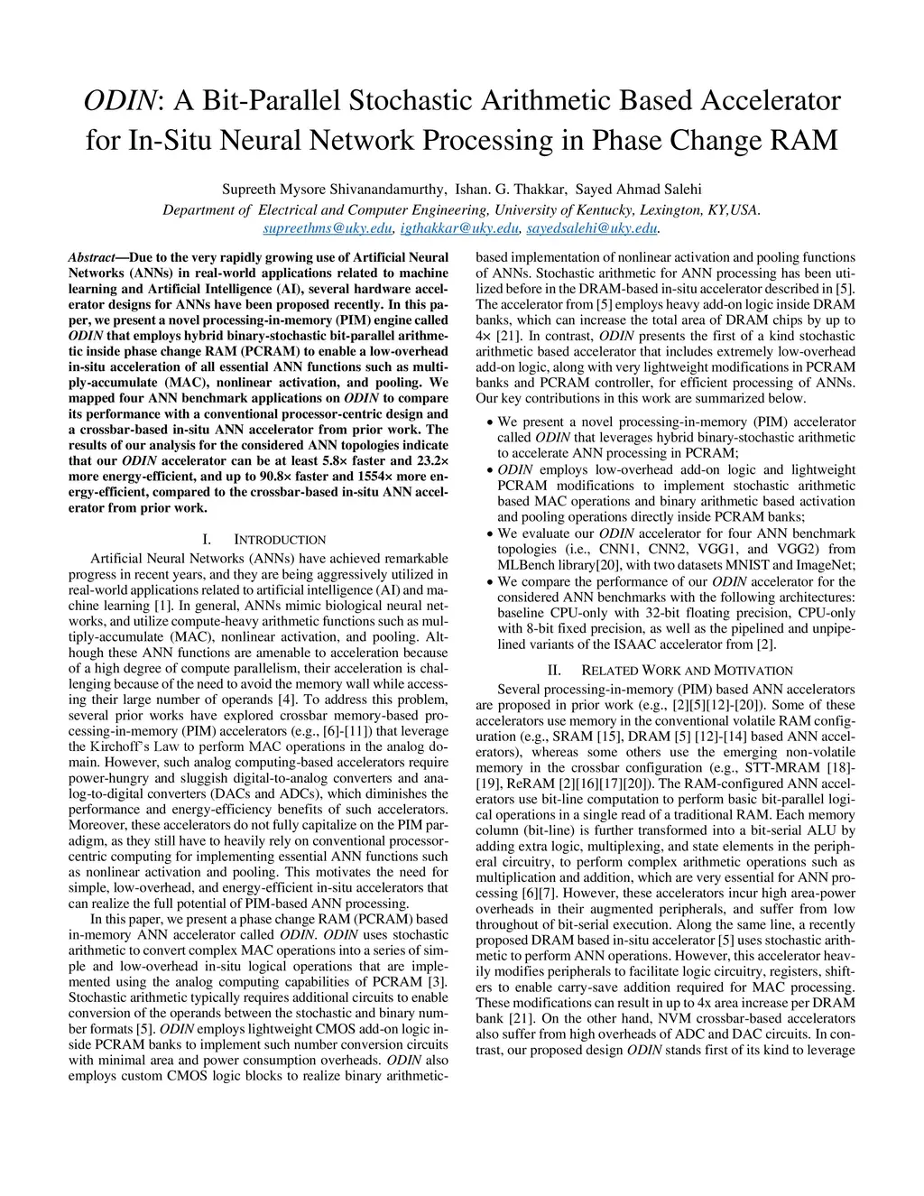 ODIN: A Bit-Parallel Stochastic Arithmetic Based Accelerator for In-Situ