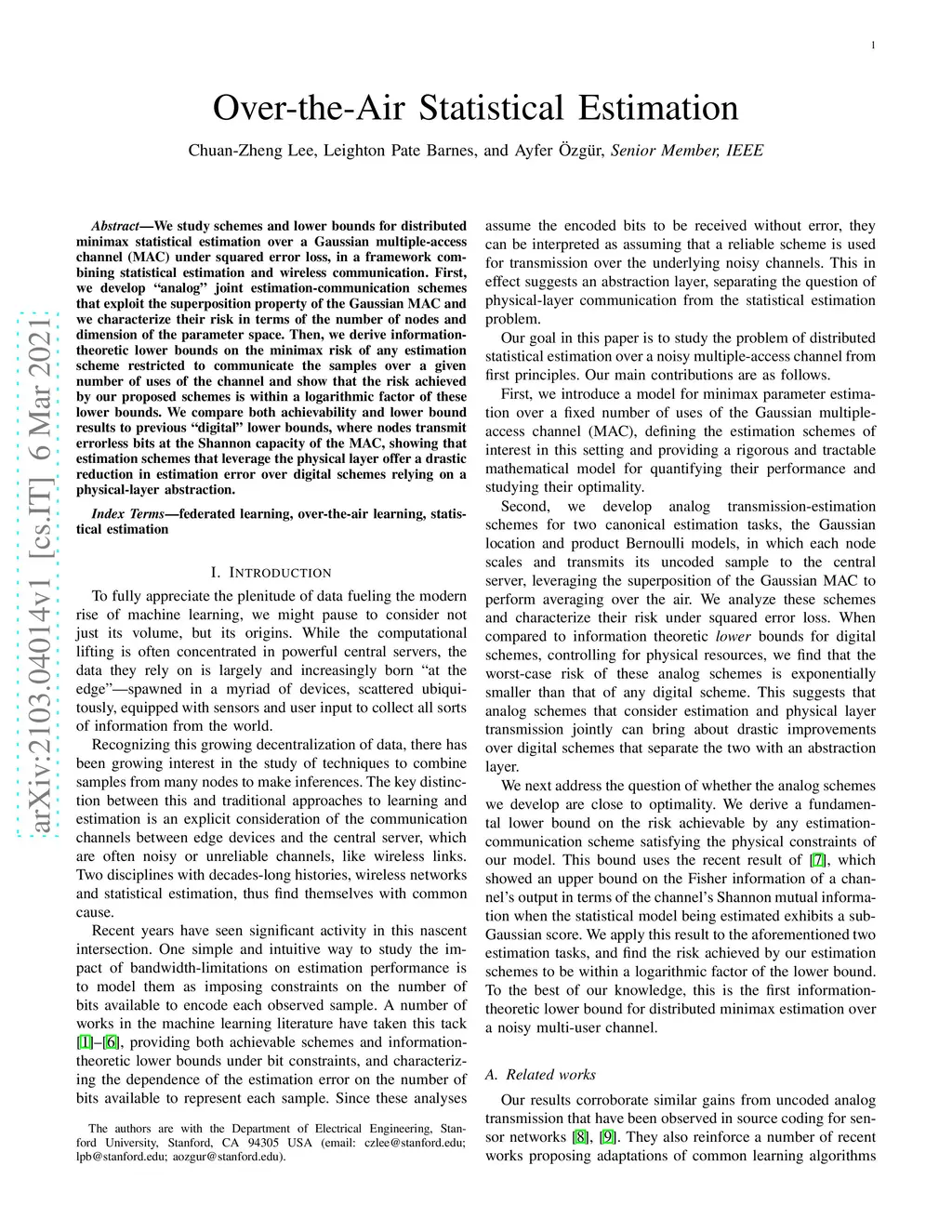 We study schemes and lower bounds for distributed minimax statistical estimation over a Gaussian multiple-access channel (MAC) under squared error loss, in a framework combining statistical estimation and wireless communication. First, we develop "analog" joint estimation-communication schemes that exploit the superposition property of the Gaussian MAC and we characterize their risk in terms of the number of nodes and dimension of the parameter space. Then, we derive information-theoretic lower bounds on the minimax risk of any estimation scheme restricted to communicate the samples over a given number of uses of the channel and show that the risk achieved by our proposed schemes is within a logarithmic factor of these lower bounds. We compare both achievability and lower bound results to previous "digital" lower bounds, where nodes transmit errorless bits at the Shannon capacity of the MAC, showing that estimation schemes that leverage the physical layer offer a drastic reduction in estimation error over digital schemes relying on a physical-layer abstraction.