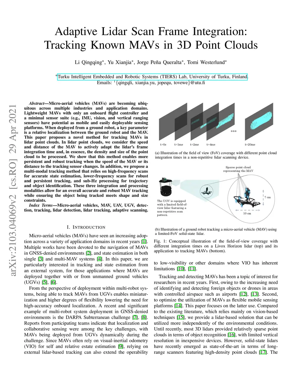 Adaptive Lidar Scan Frame Integration: Tracking Known MAVs in 3D Point
