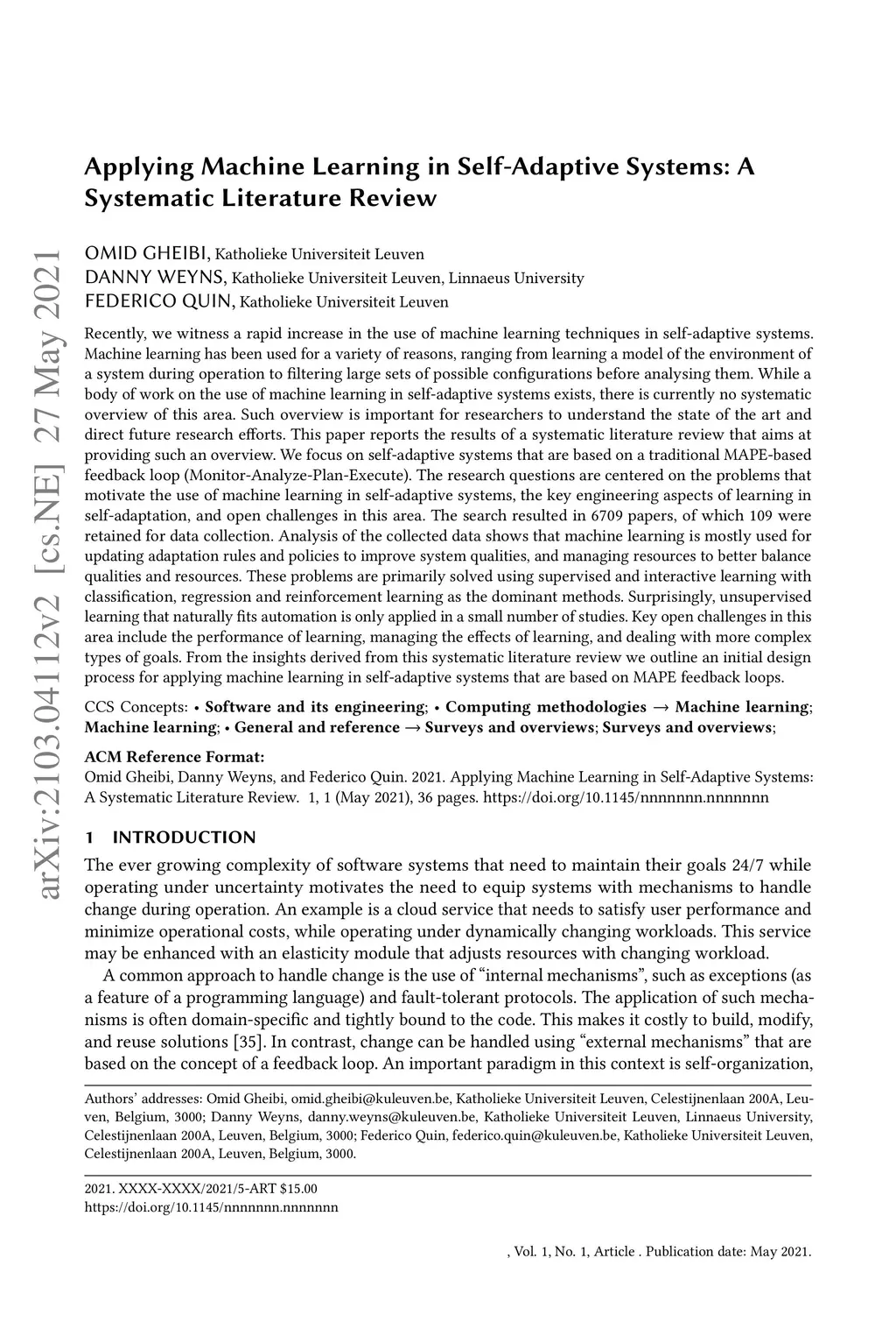 Applying Machine Learning in Self-Adaptive Systems: A Systematic