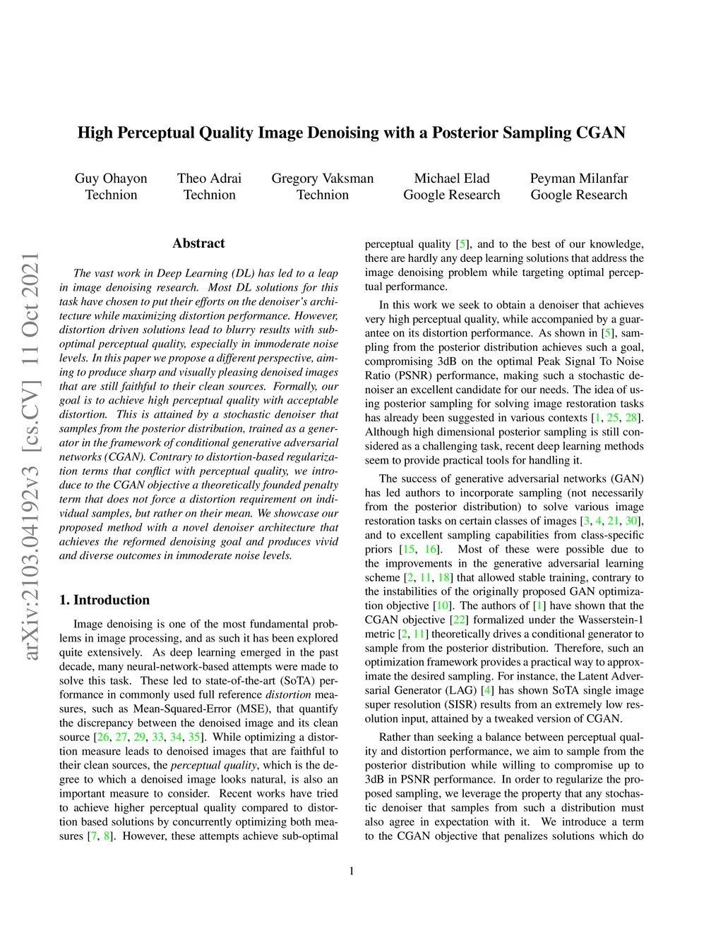 High Perceptual Quality Image Denoising with a Posterior Sampling CGAN