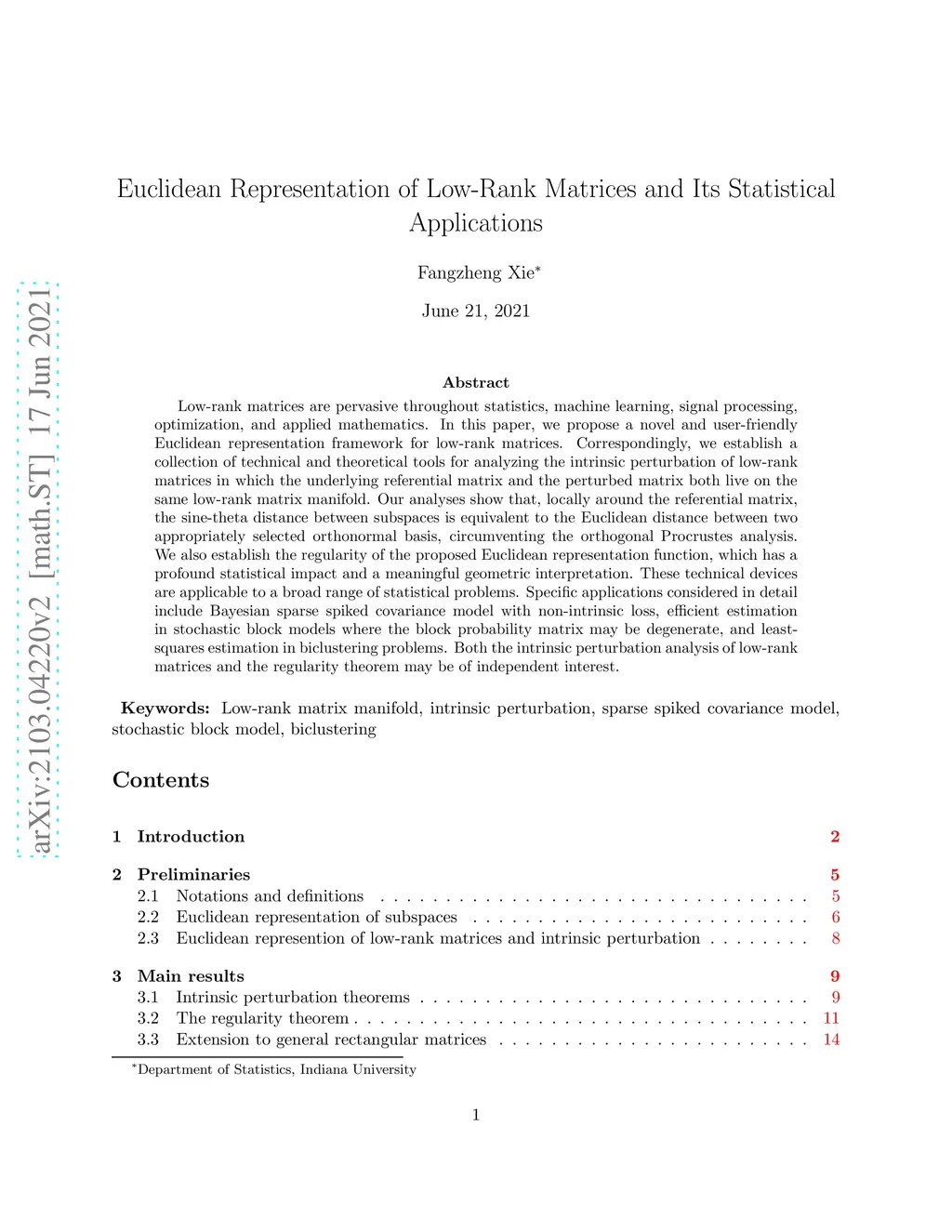 Euclidean Representation of Low-Rank Matrices and Its Statistical